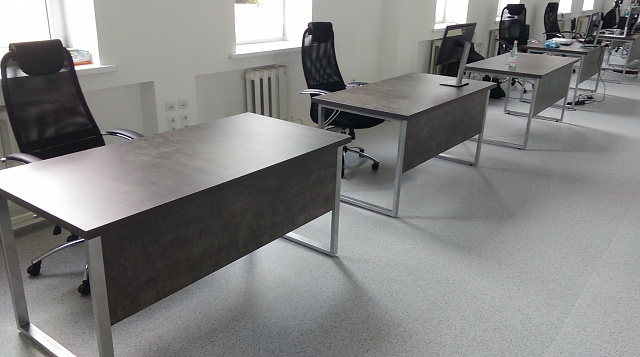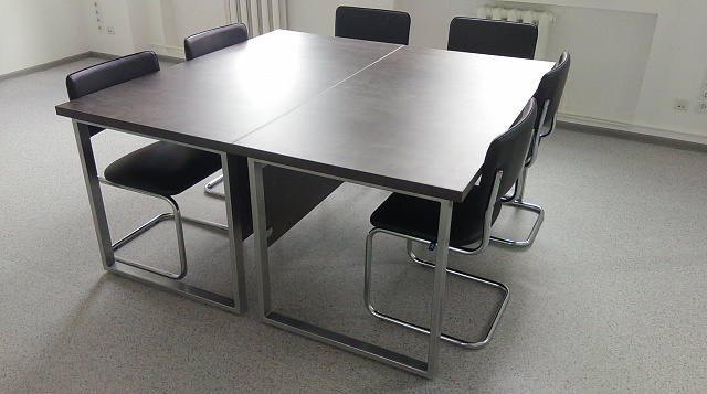 код 104728Стол для офисных помещений на надежных металлических опорах.