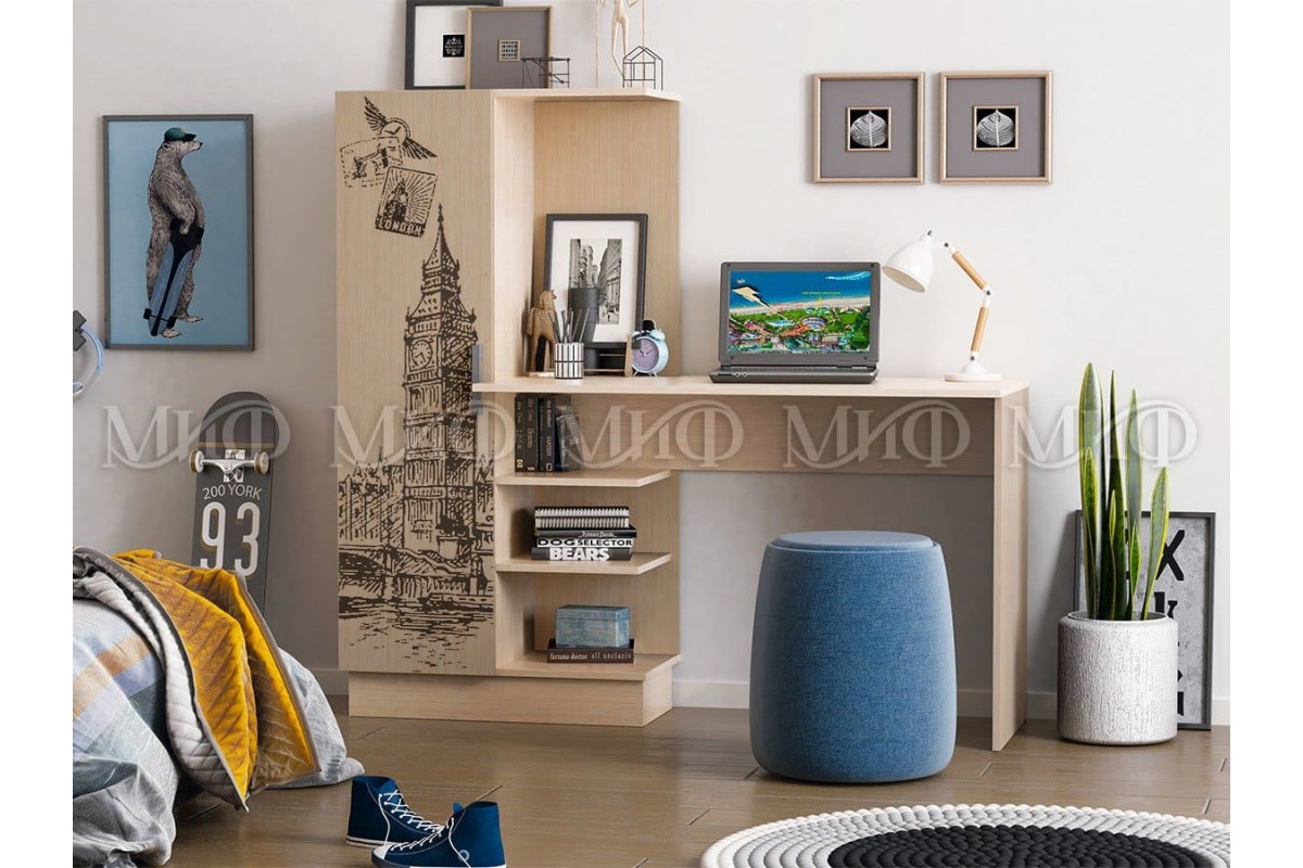 Стол письменный №1 с рисунком (дуб беленый)