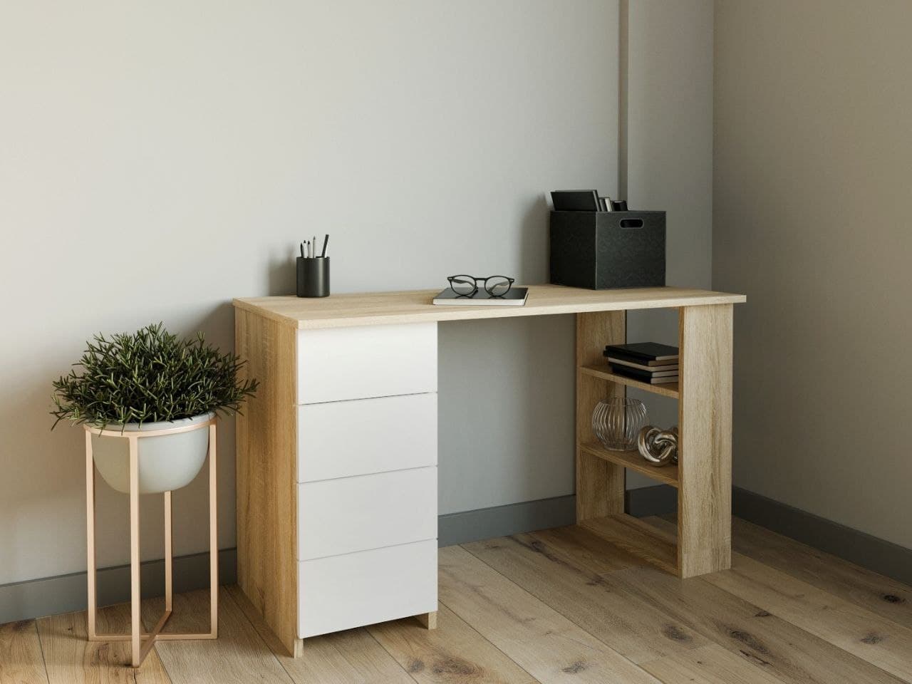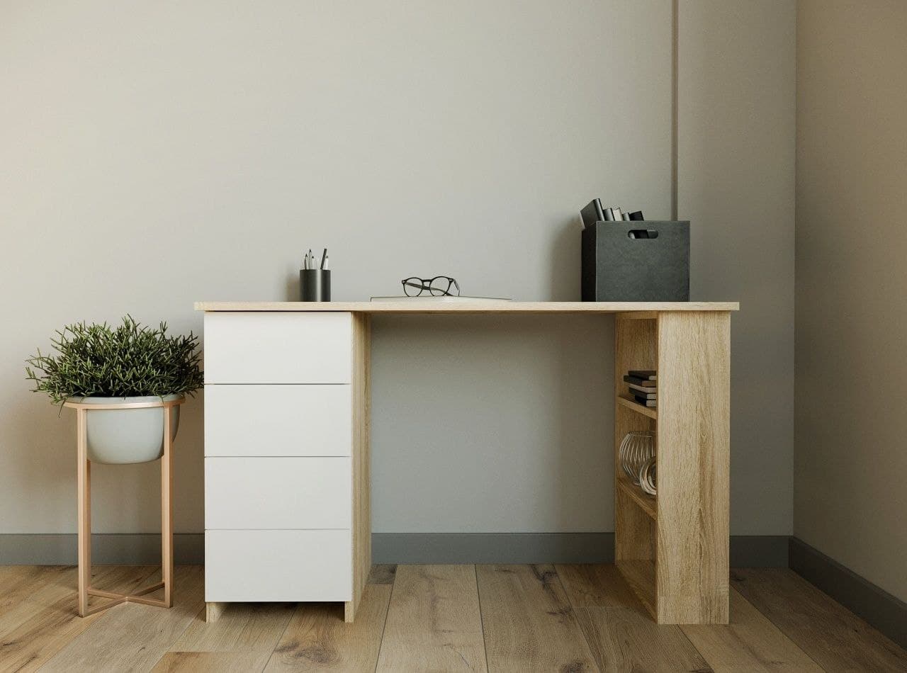 Стол письменный 4 ящика (сонома/белый)