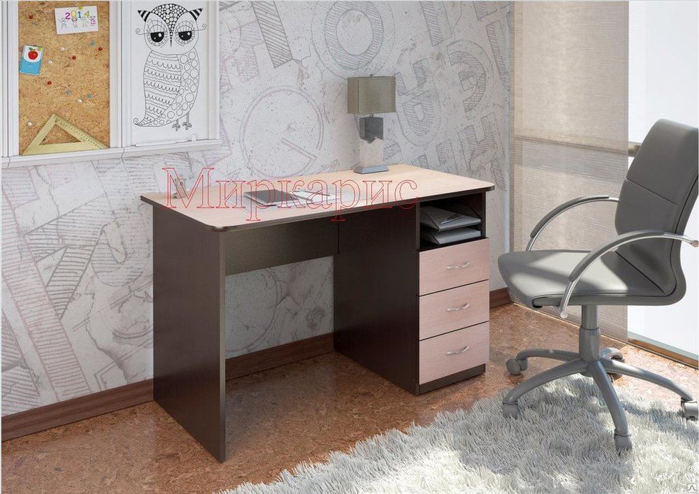 Стол письменный «Альфа». Классический письменный стол. Не занимая много места в комнате, стол СТ-104 создаст полноценное рабочее место для школьника или офисного сотрудника. Стол оснащён тумбой с тремя выдвижными ящиками. Изготавливается из ламинированной ДСП толщиной 18 мм. Торцы стола обработаны кромкой ПВХ. Стол поставляется в разобранном и упакованном виде.