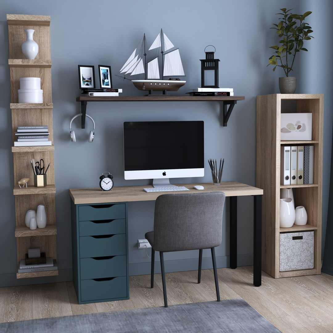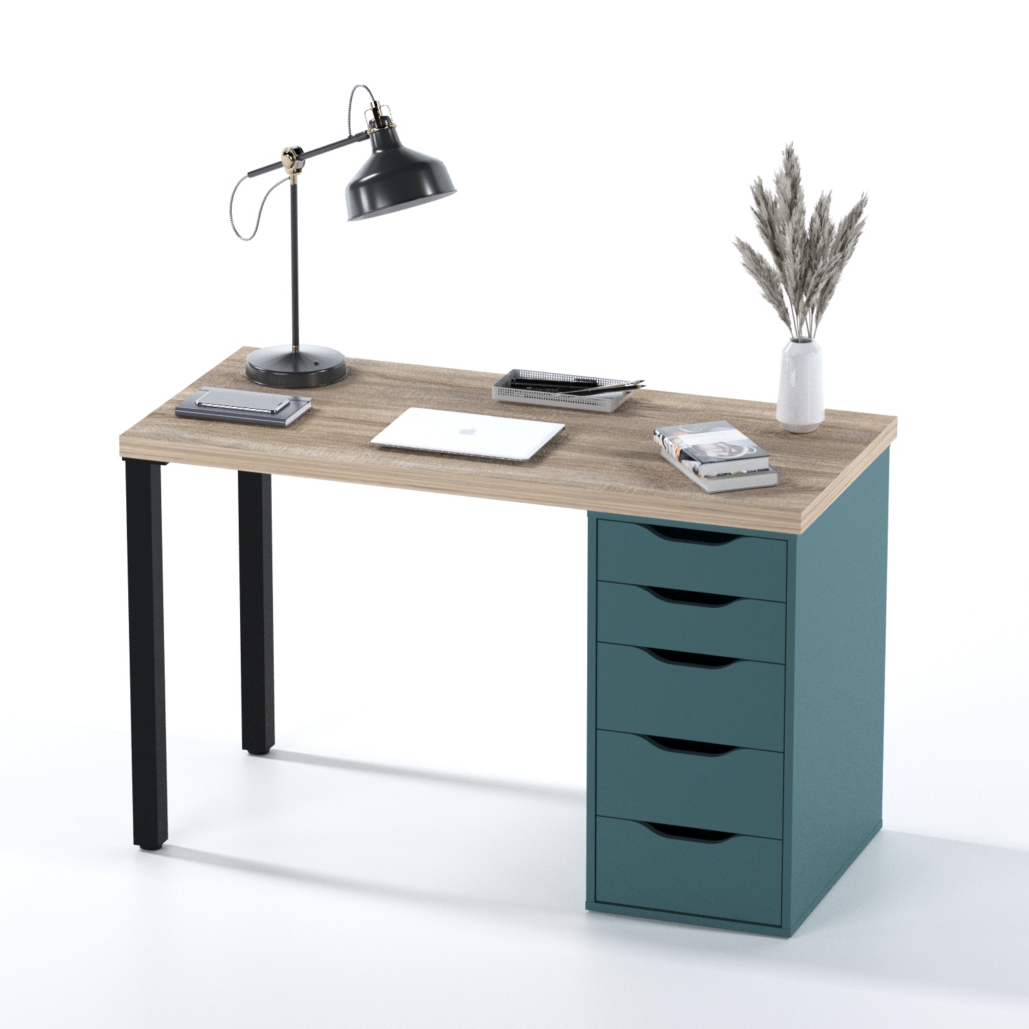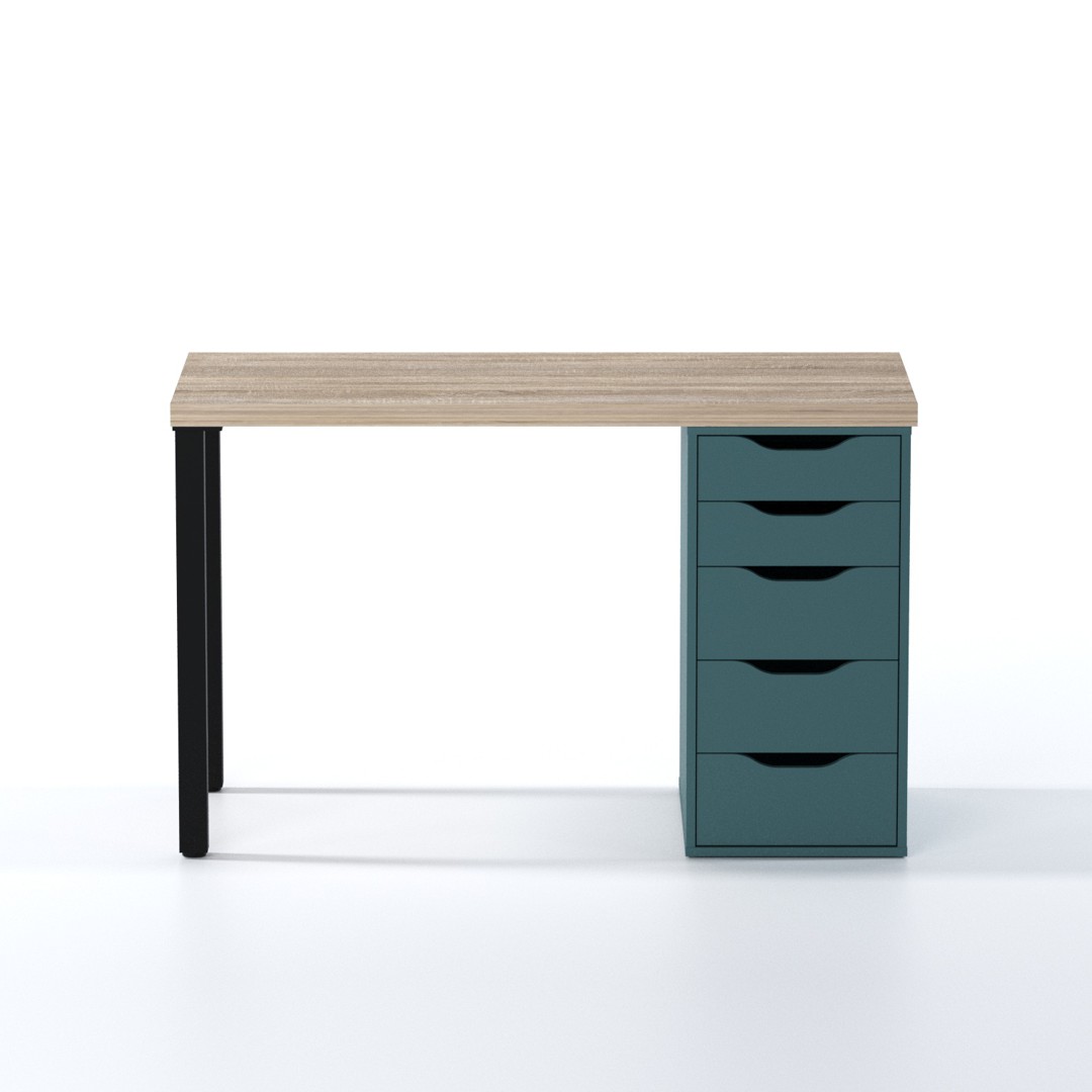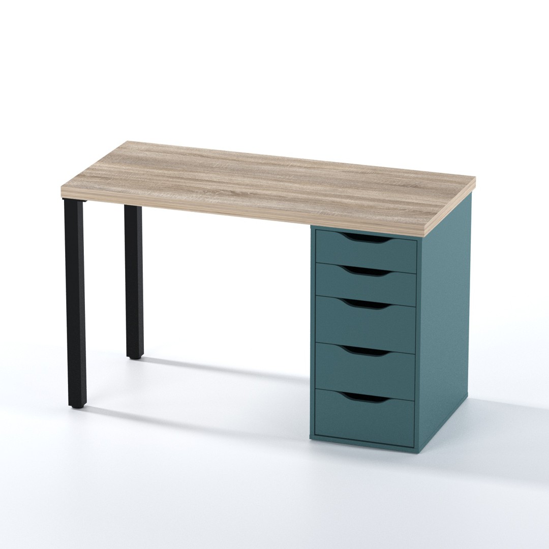 Стол письменный «Ингар 1/5Т» дуб беленый/серо-бирюзовый/черный арт. 01378