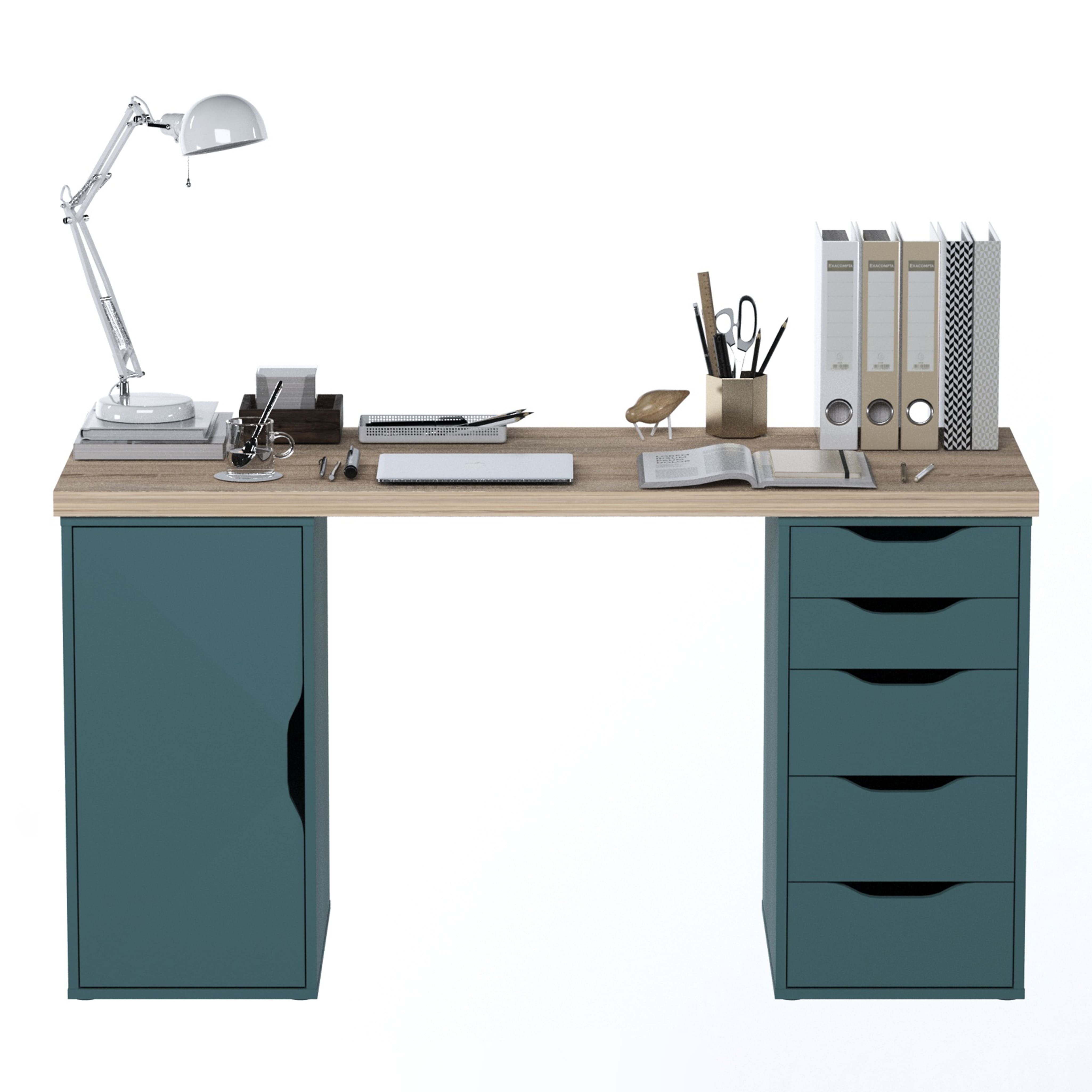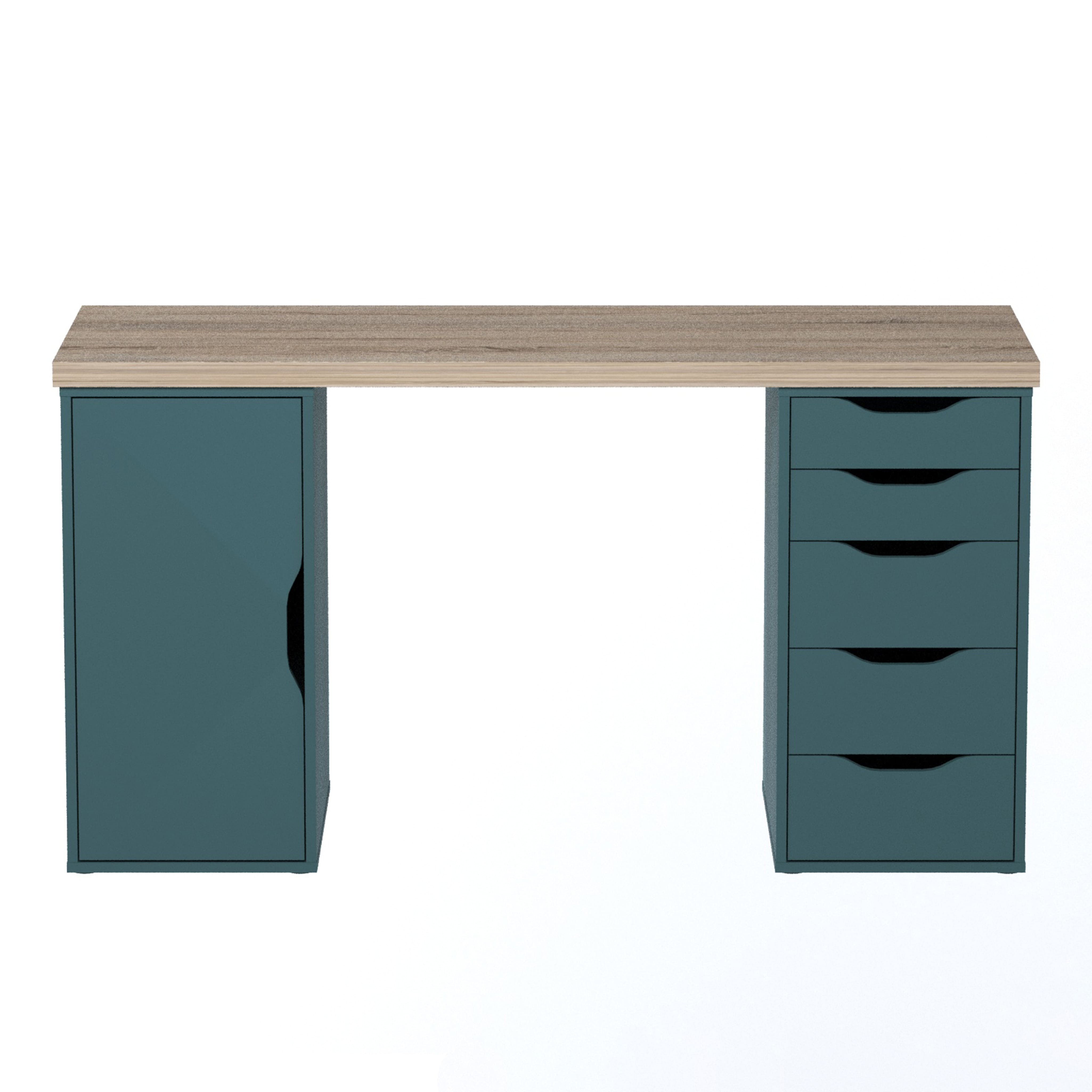 Стол письменный «ИНГАР 2/5/ДВ» 140x75x55, дуб беленый/серо-бирюзовый