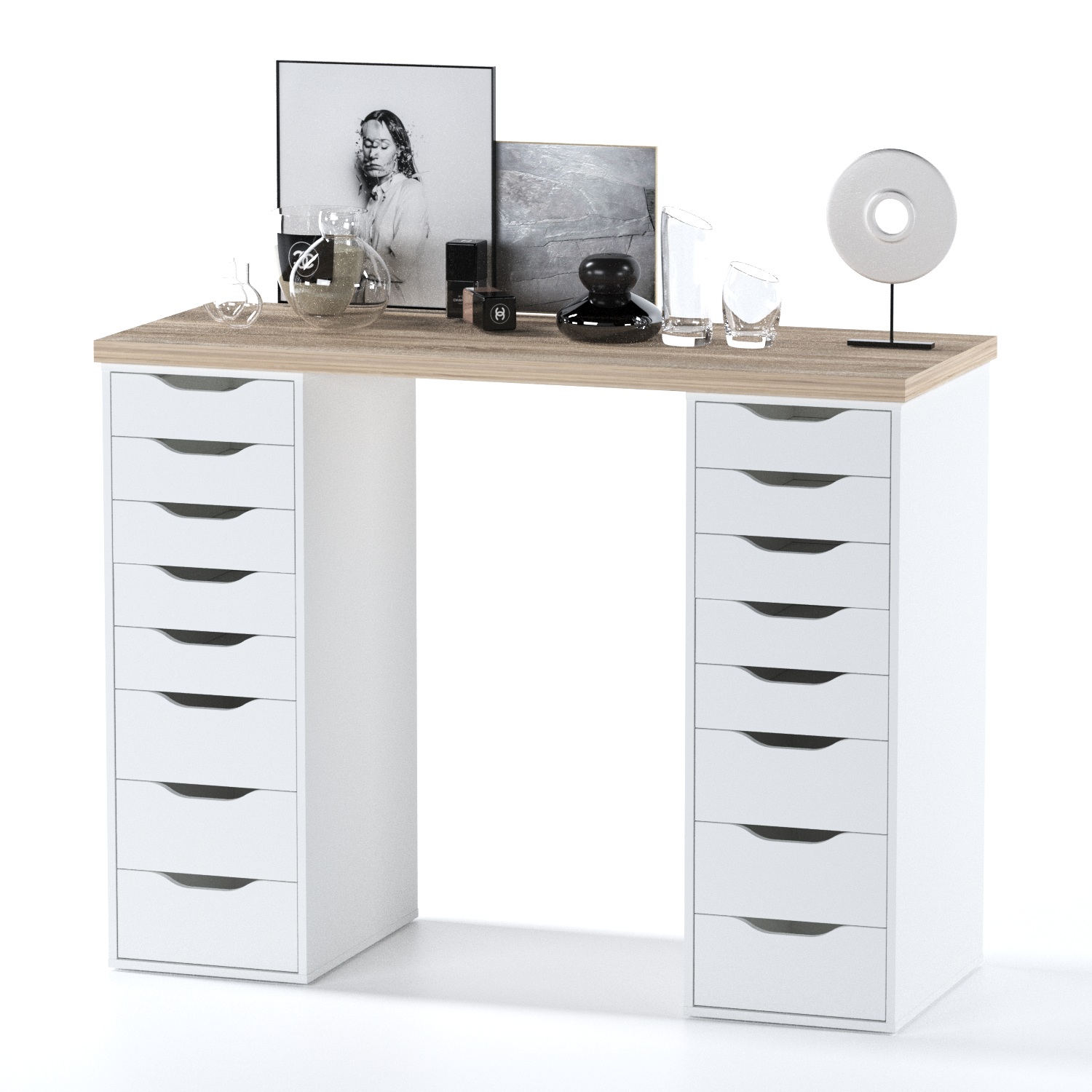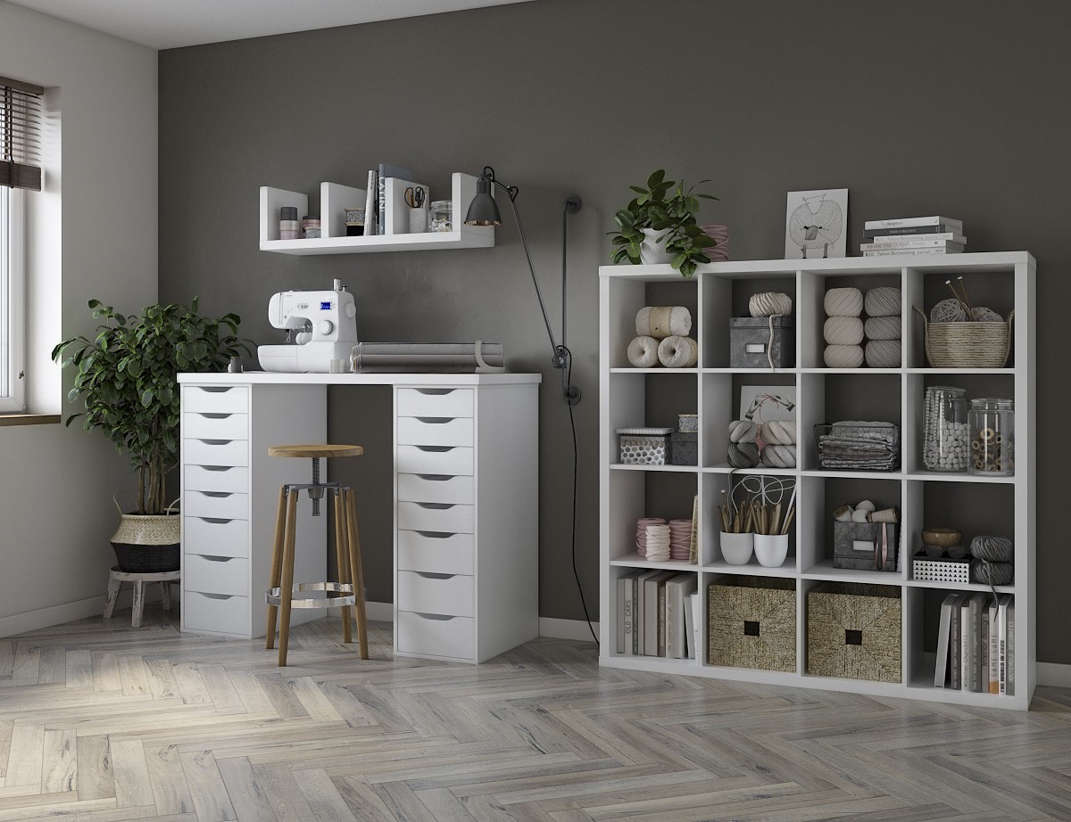 - Занимает мало места, но имеет большое количество выдвижных ящиков для хранения.