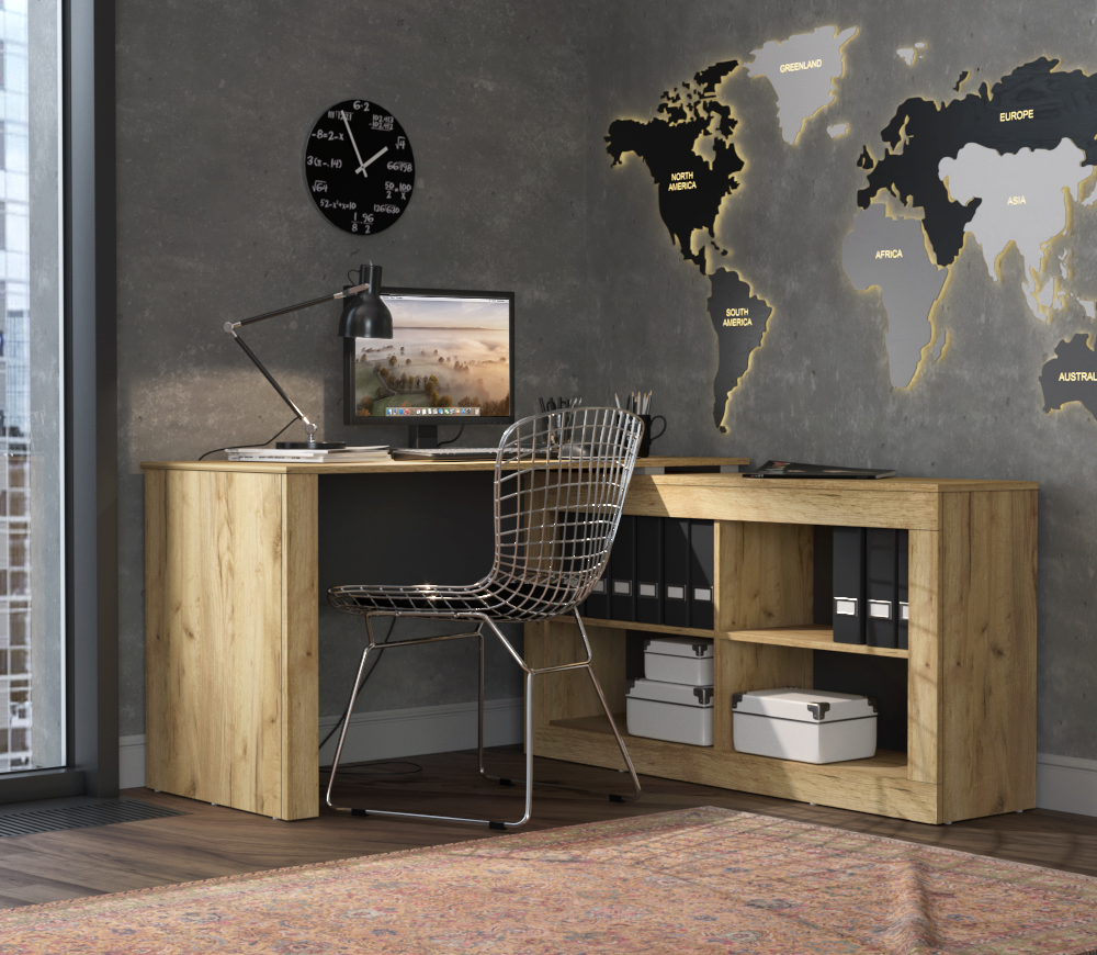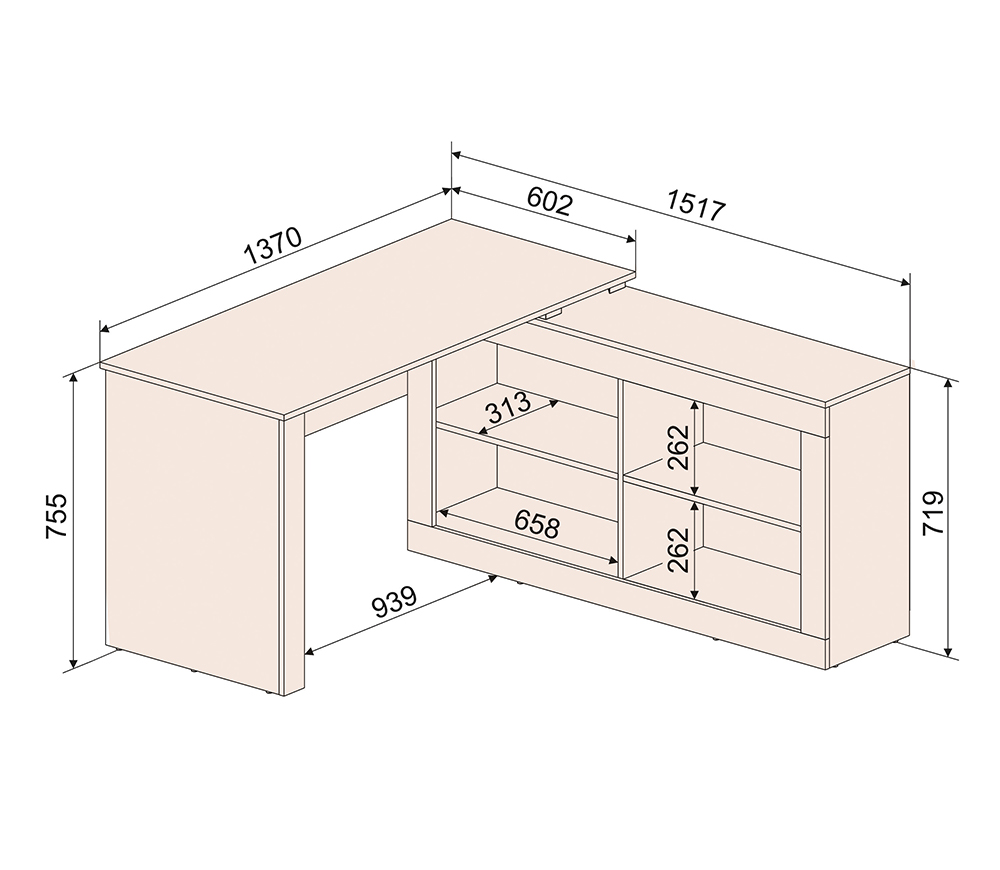 Стол письменный имеет 4 открытые ниши для хранения книг и документов.