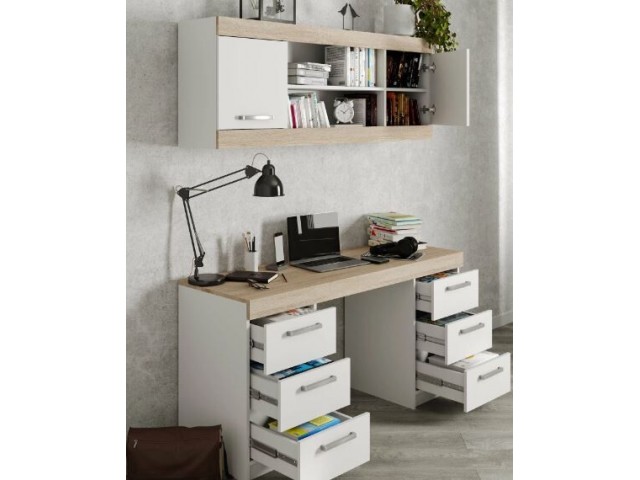 Стол и книжная полка Модерн выпускаются в белом цвете и с двумя вариантами декора: «Сосна Рокпорт» и «Дуб Сонома».