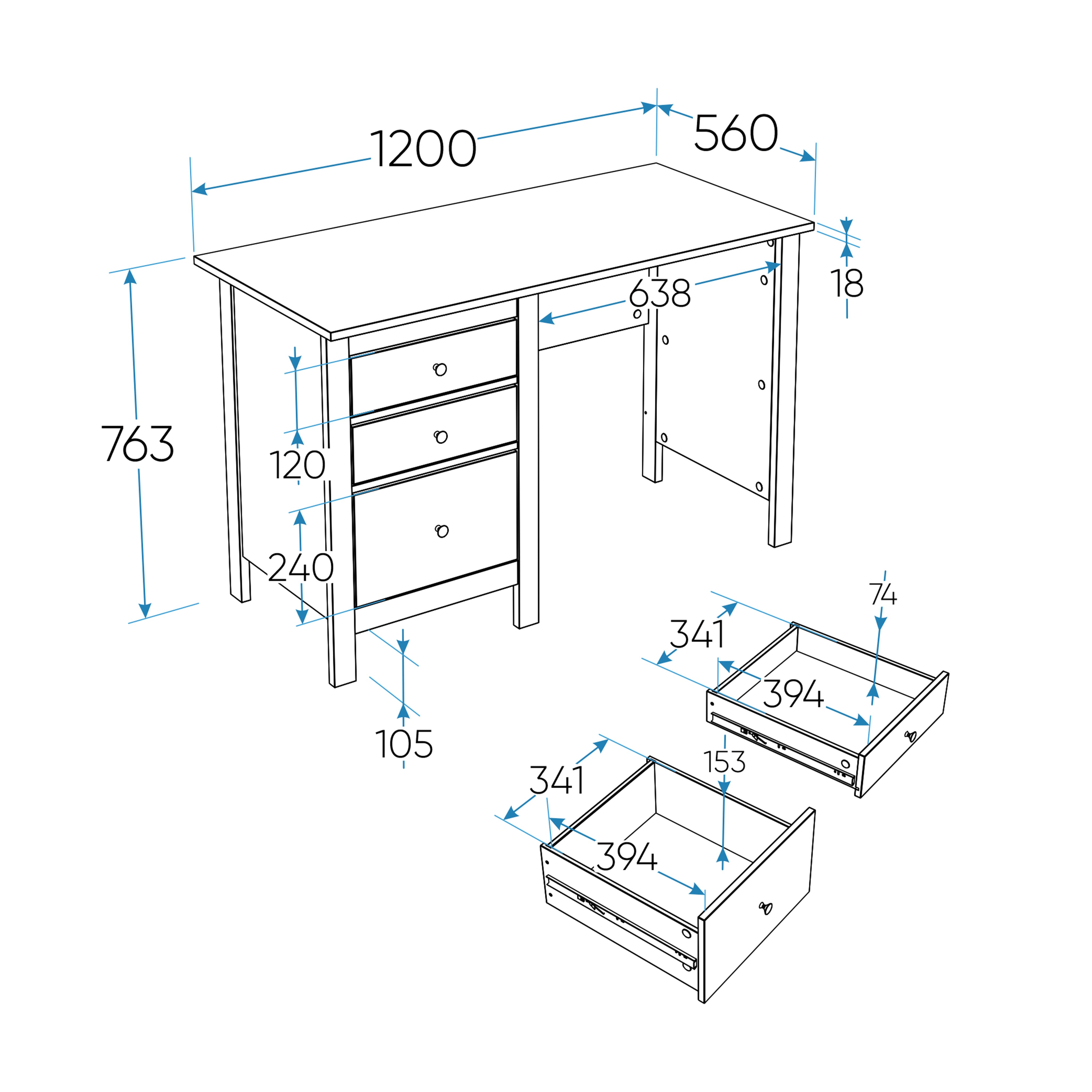 Стол письменный «Ингар 2/55» дуб беленый/серо-бирюзовый арт. 01170