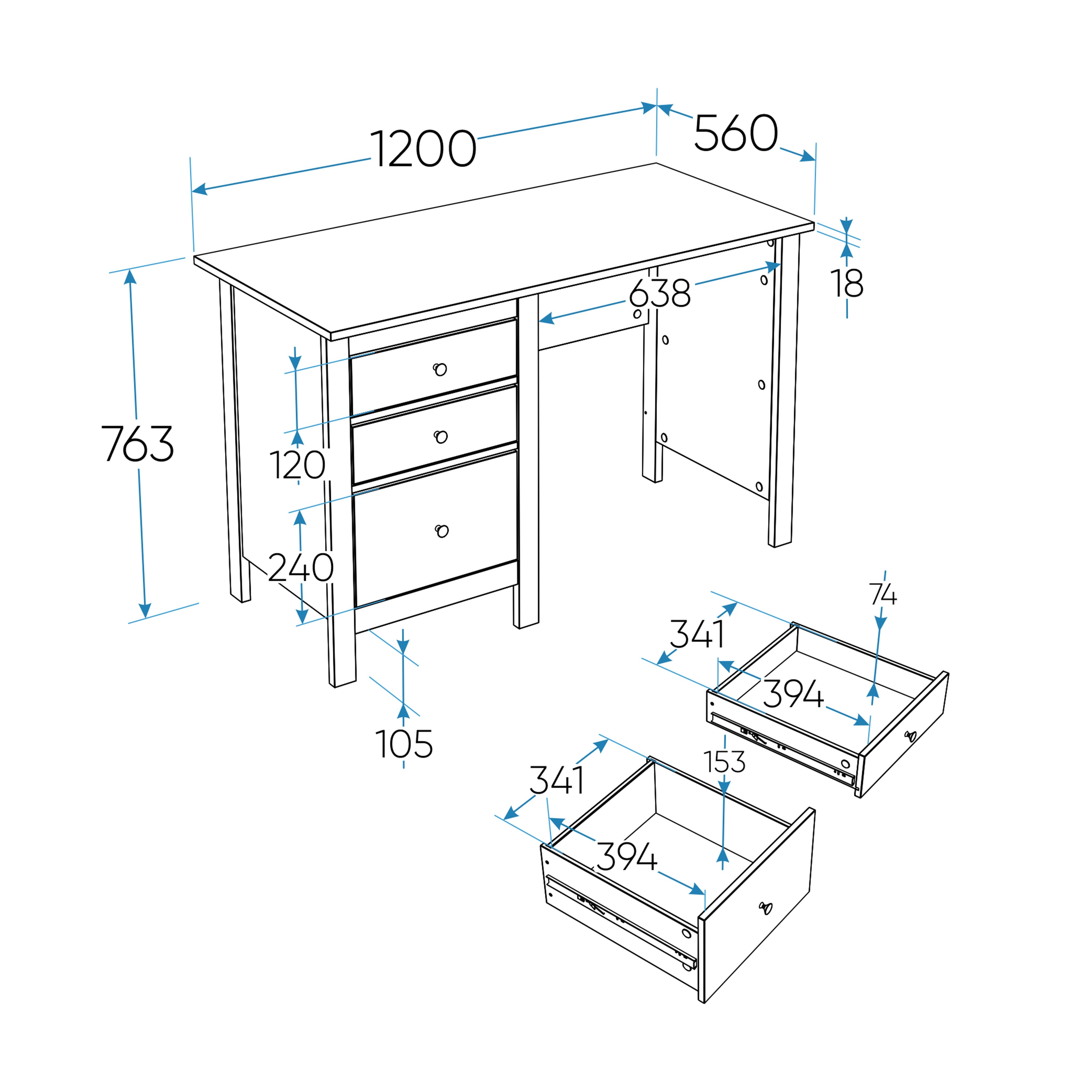 Стол письменный «САГА» 120х56см, темно-бирюзовый/ясень (2.08.06.160.16 RU)