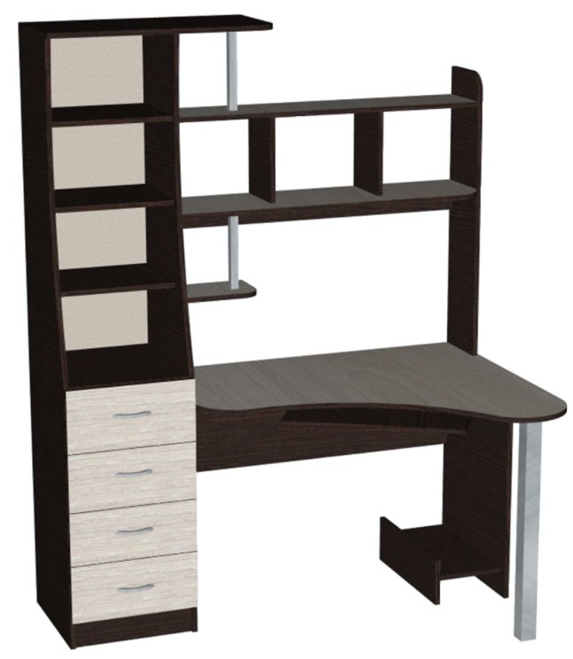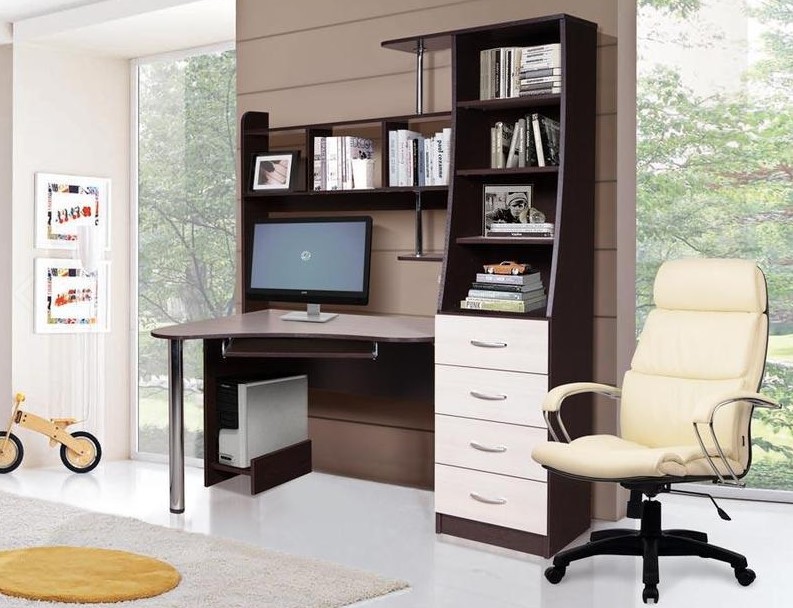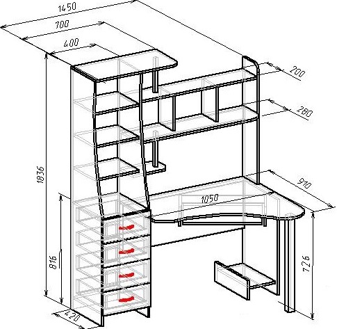 Угловой широкий стол. Подсветка полок. Можно дополнить кроватью-трансформер.