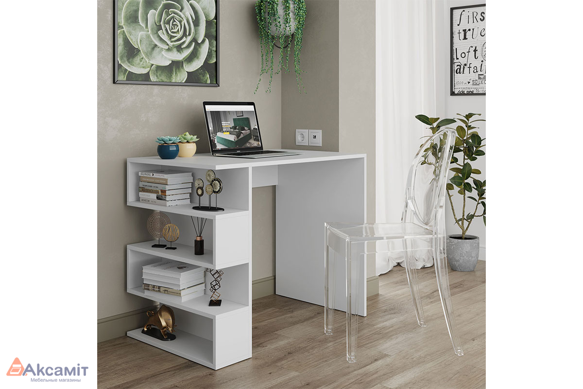 Письменный стол Штерн — это комбинация удобной рабочей поверхности и оригинальной системы хранения в виде встроенного стеллажа. Благодаря оптимальным габаритам модель подойдет как для отдельного кабинета, так и для небольшой рабочей зоны в гостиной, спальне или подростковой комнате.