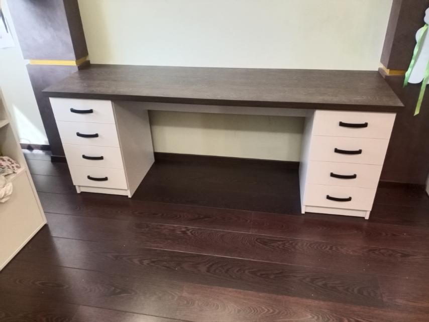 Прямой рабочий стол с одной тумбой на три выдвижных ящика. Столешница 110см.