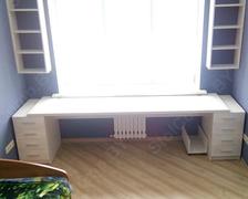 Широкий двухместный стол, встраиваемый в приоконное пространство детской.