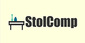Небольшой компьютерный стол в комплекте с комодом и навесной полкой.