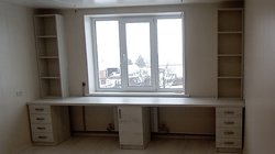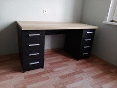 Длинная модель с двумя рабочими местами и надстройками на столешнице.