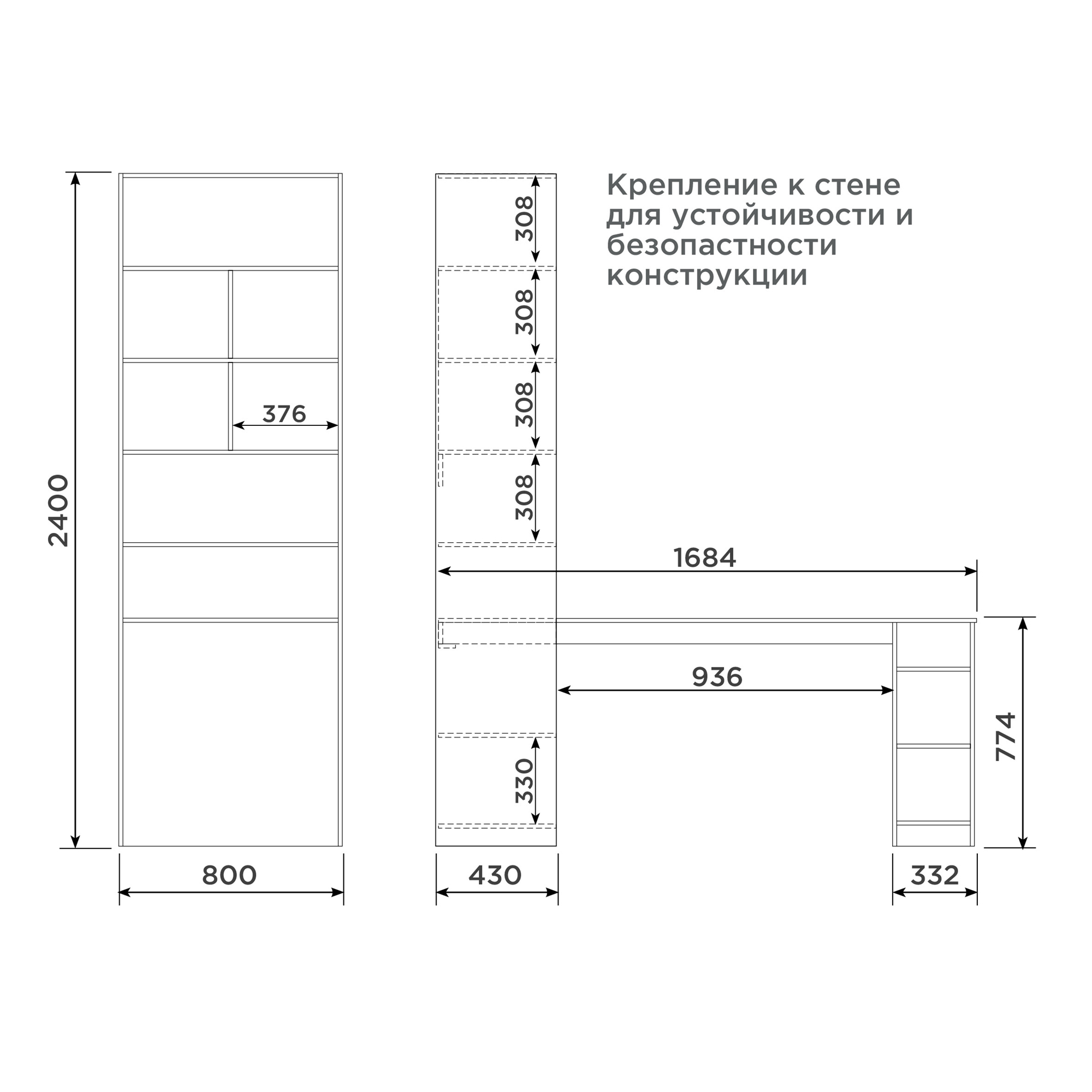 код 156019Размер (ШхВхГ): 80х240х170 см. Материал: ЛДСП.