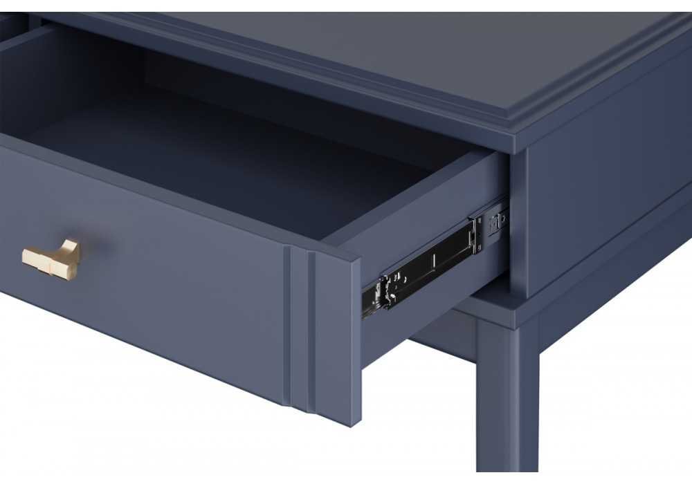 Модель сочетает широкую столешницу, идеальную для размещения декора или зеркала, с вместительным выдвижным ящиком и открытым пространством внизу. Глубокий «Тёмный лазурный» цвет придает изделию благородный и современный вид.