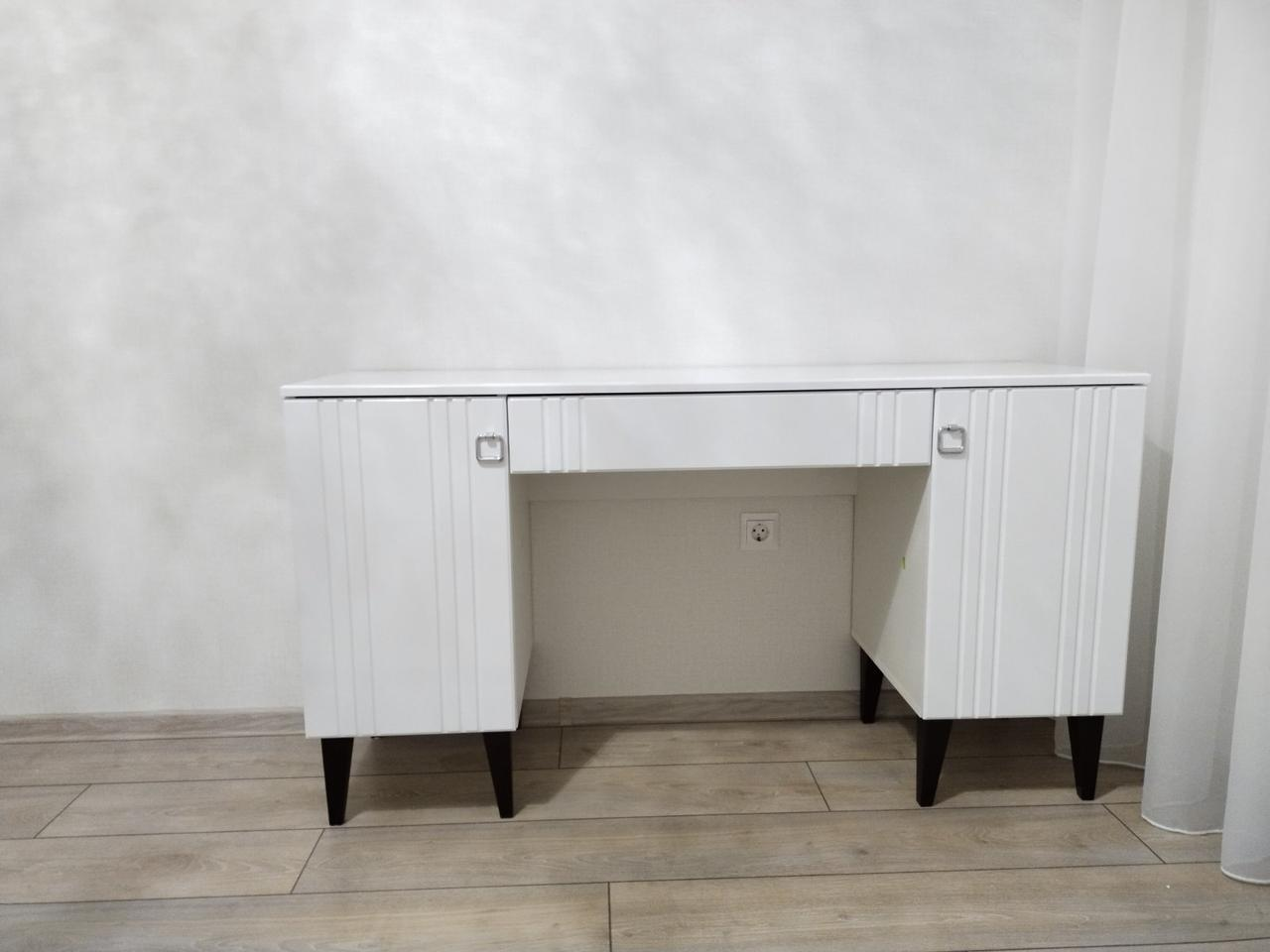 Размеры (ДхГхВ): 140х55х75 см. 2 тумбы с пятью выдвижными ящиками в каждой.