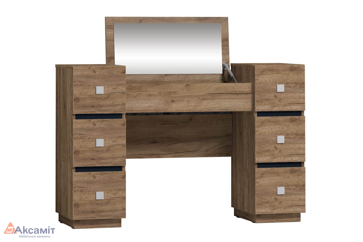 Туалетный столик просто необходим красивой женщине, которая привыкла за собой ухаживать не бегом, в ванной или прихожей, а обстоятельно. Стильный и функциональный он не займет много места в маленькой спальне. Разместите его в спальне у окна, и лучший естественный свет вам обеспечен. Откидная крышка стола с зеркалом скрывает нишу с делителем для хранения мелких аксессуаров, а в 6-ти выдвижных ящиках, глубиной 15 см, найдется место для множества баночек и флакончиков. Кроме того, ящики оснащены шариковыми направляющими, что обеспечивает их движению плавных ход и минимальный люфт.
