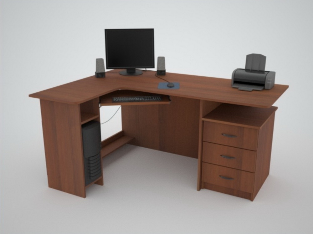 Компьютерный угловой стол с надстройкой и тумбой на 4 ящика.