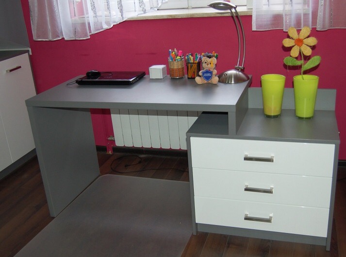 Аккуратный низкий столик отлично подойдет для размещения в детской комнате. Благодаря небольшим размерам работа за ним будет удобна для ребенка дошкольного и школьного возраста. В комплекте имеется тумба с ящиками для канцелярских принадлежностей.