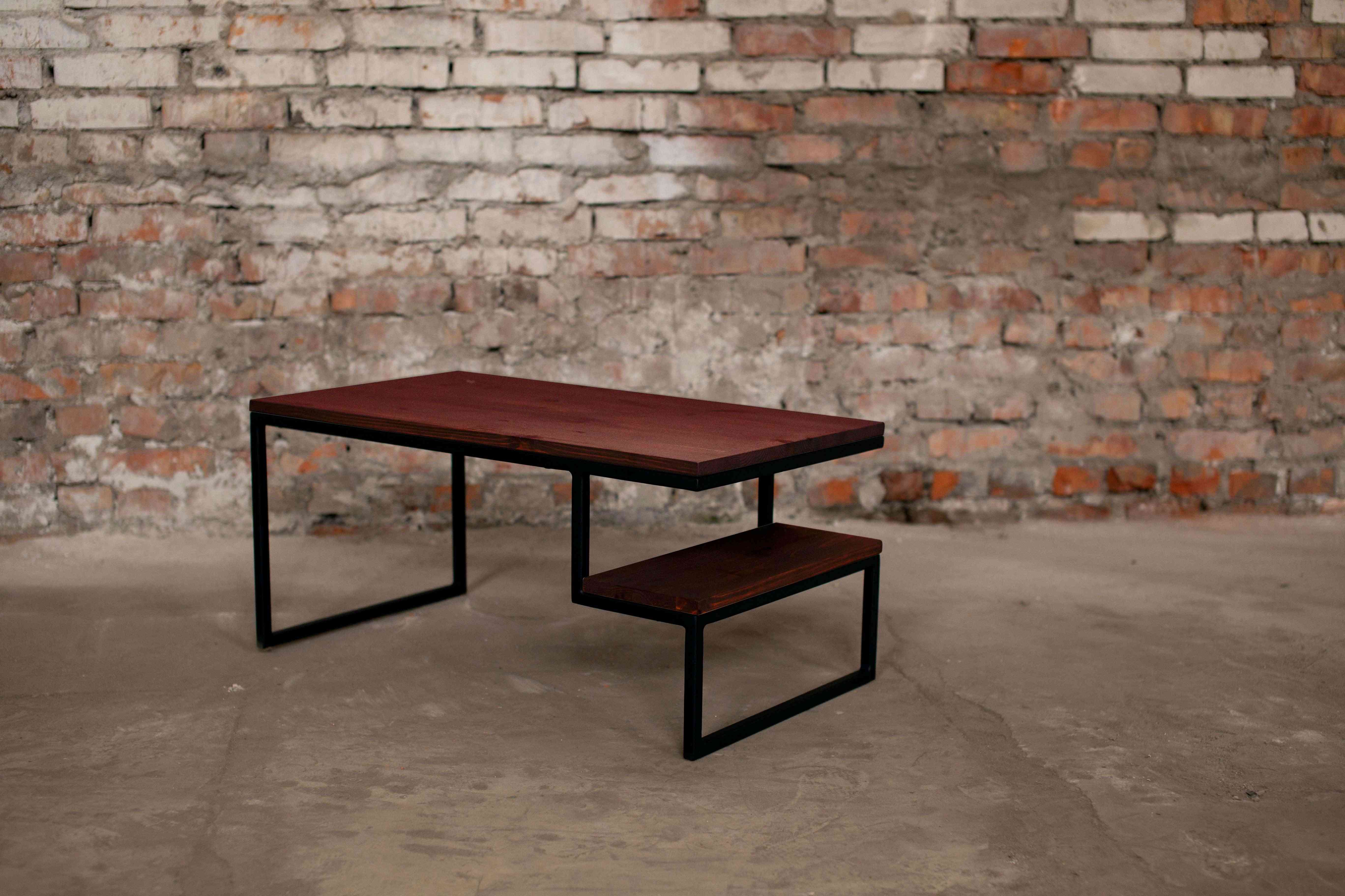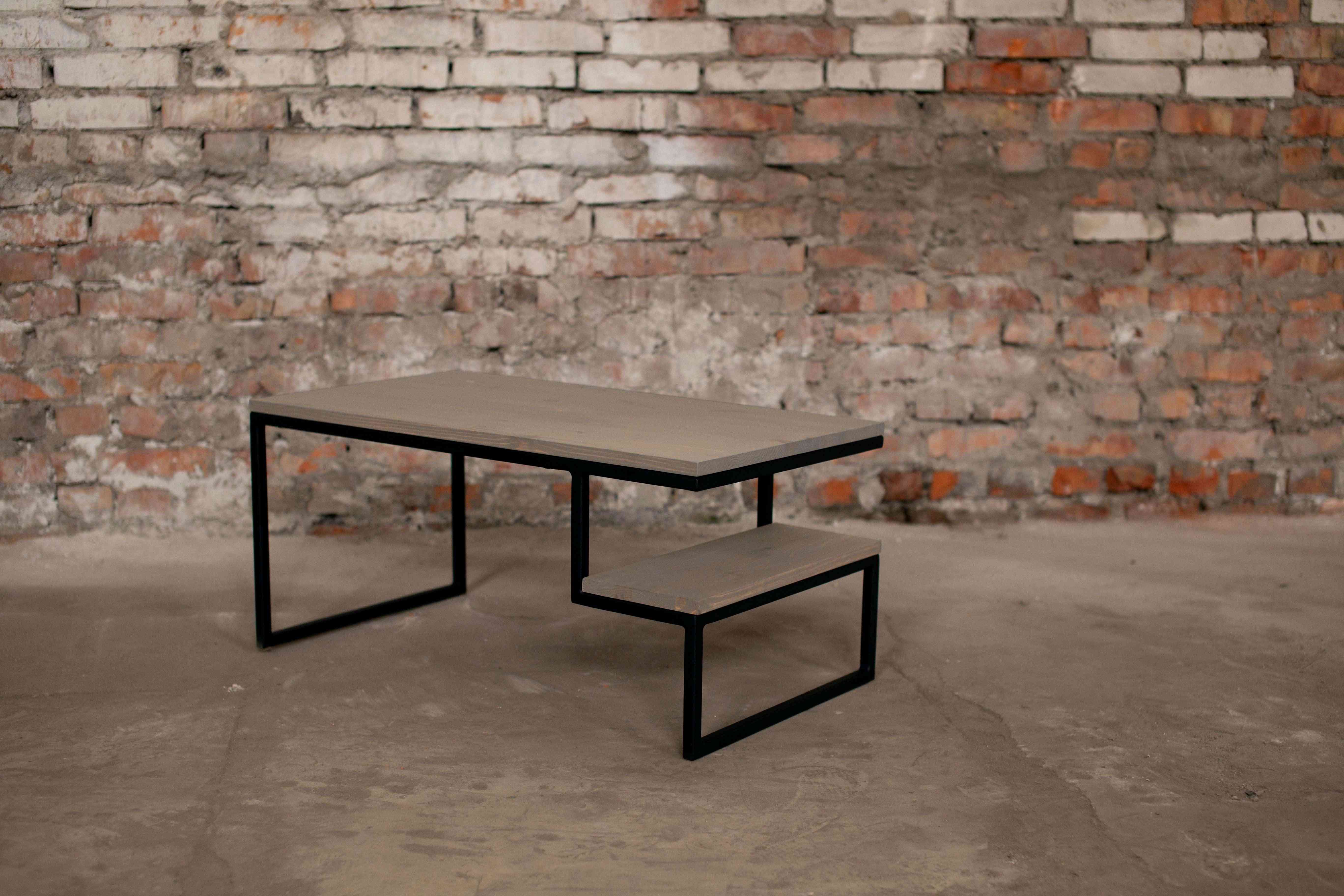 Круглый журнальный столик в стиле лофт. Материал: цельноламельный массив дуба, металл.