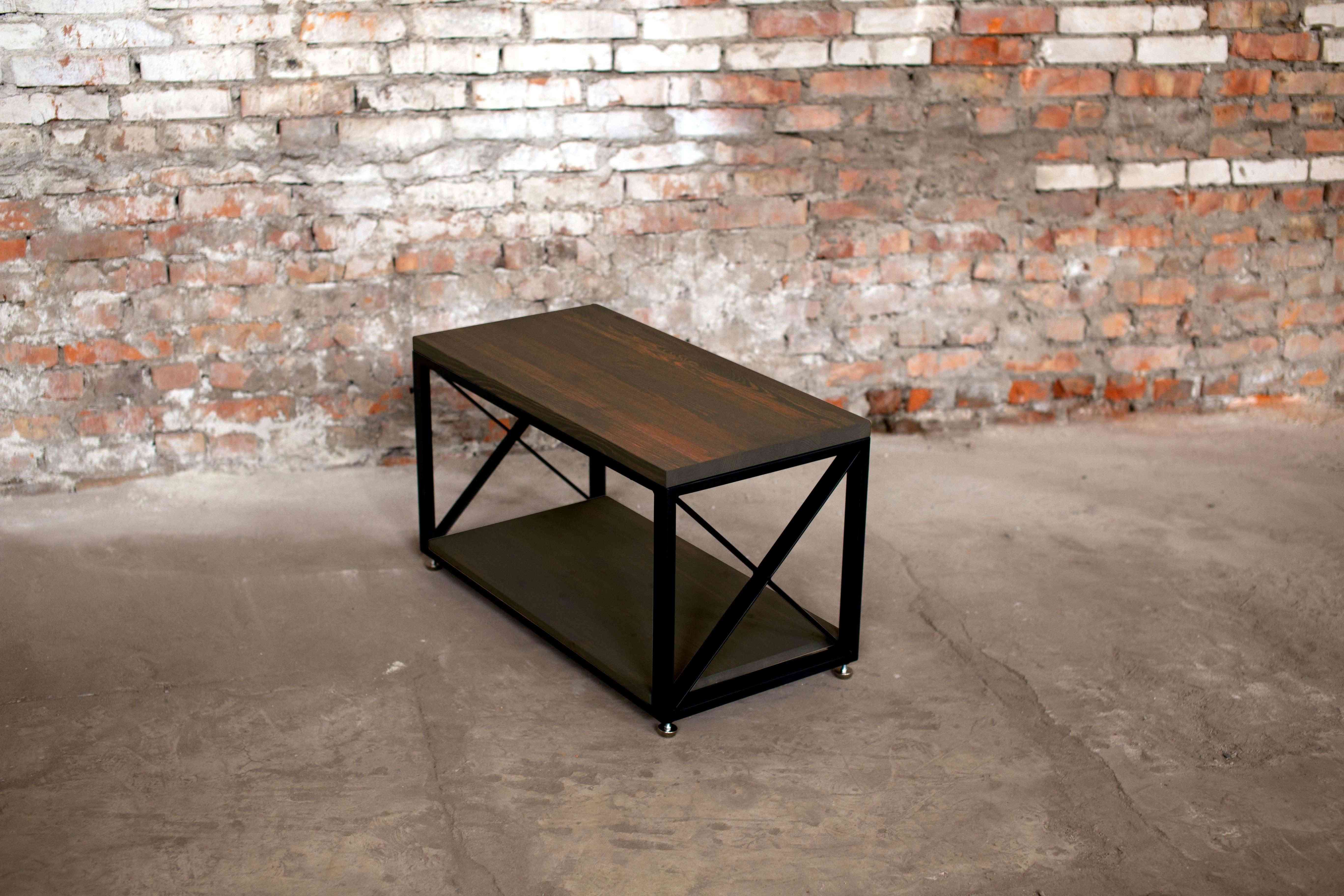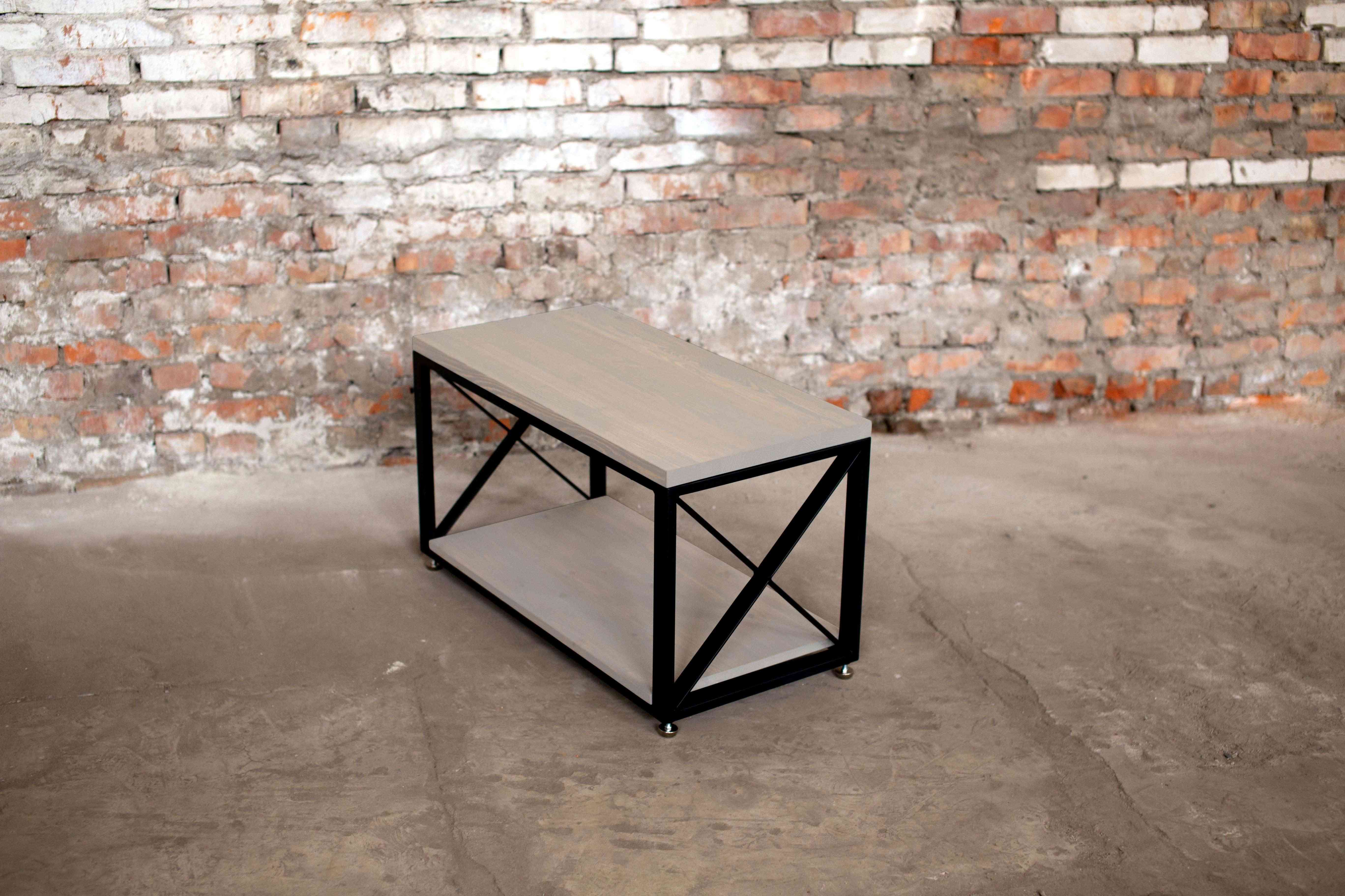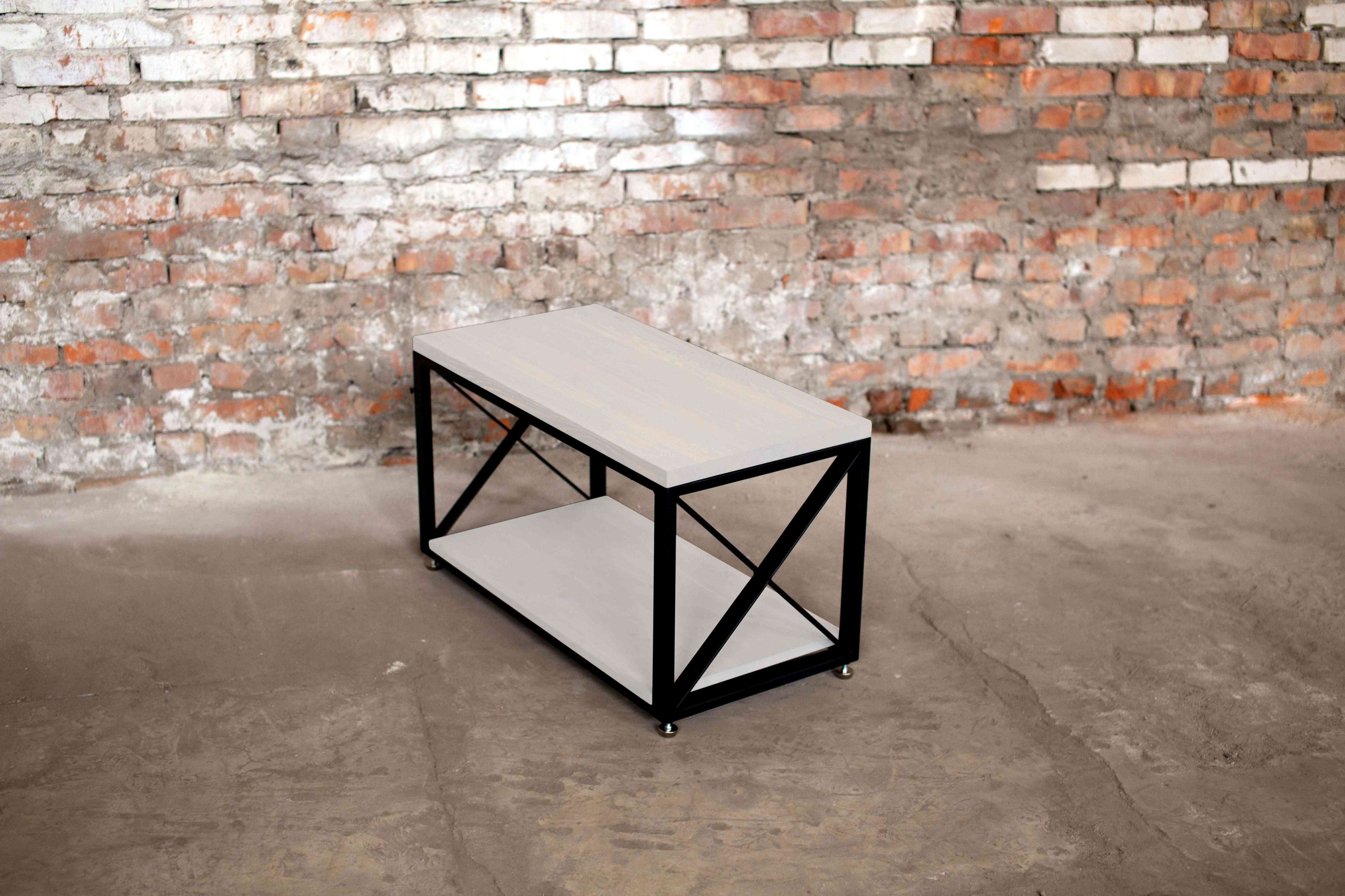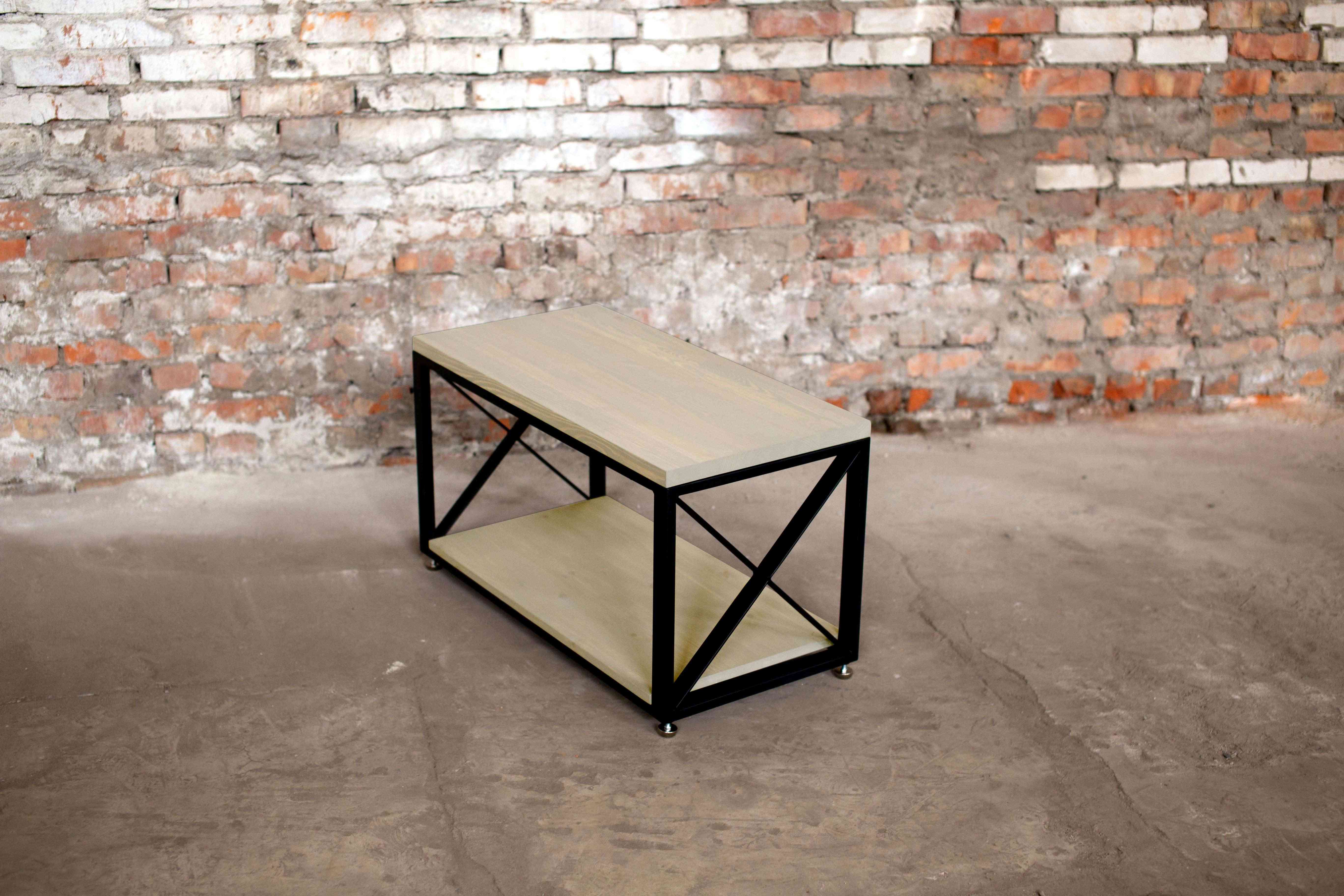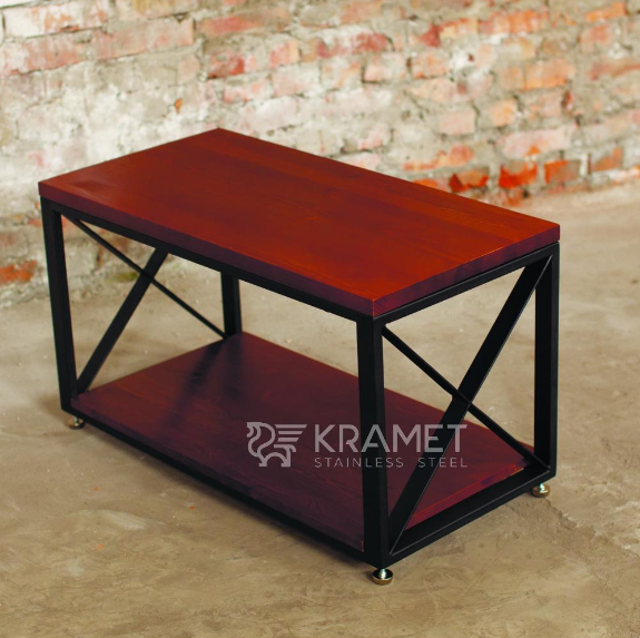 Размеры: 900х450х480 мм. Металлический каркас. Вставки: массив сосны.