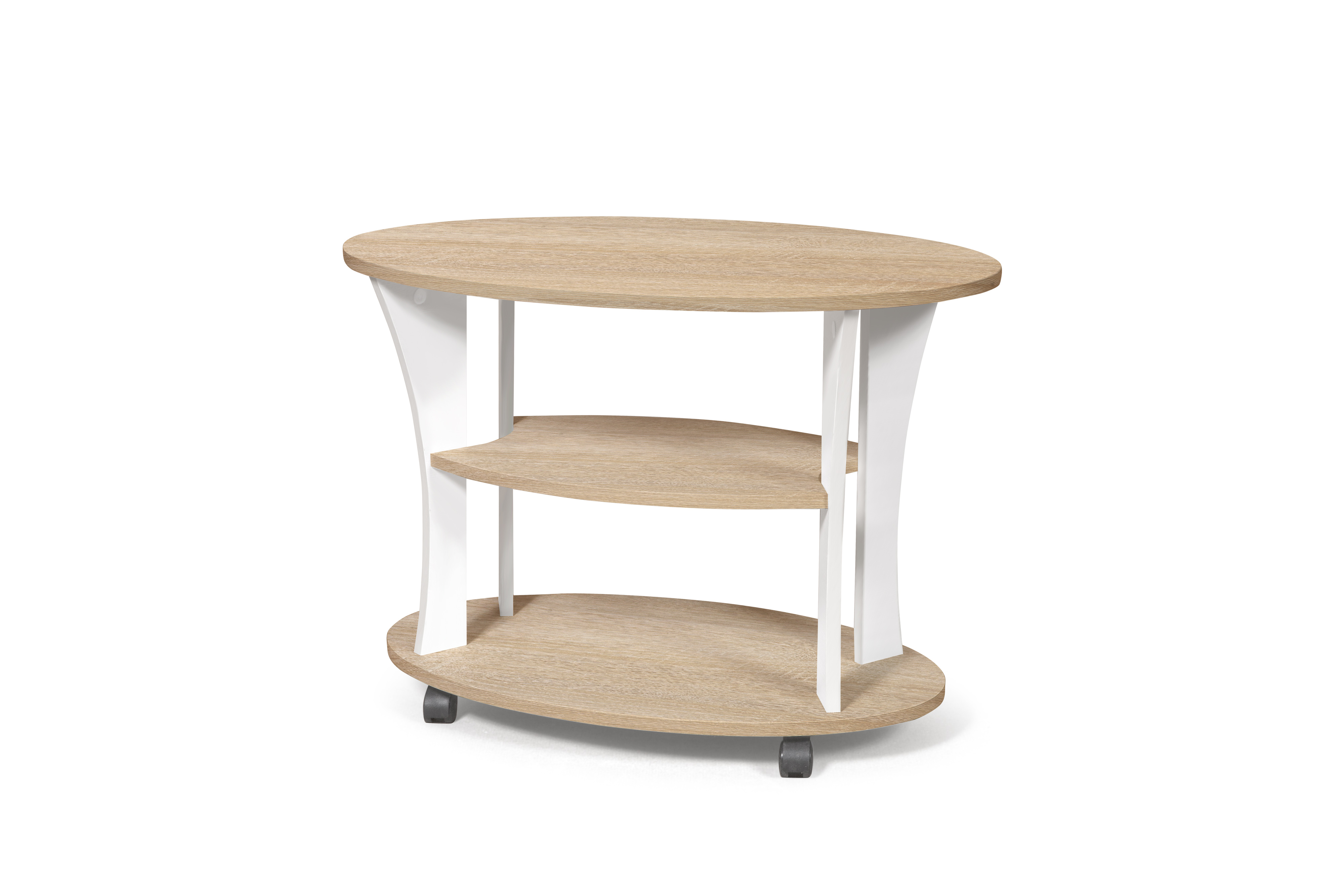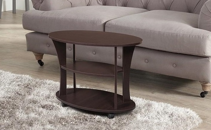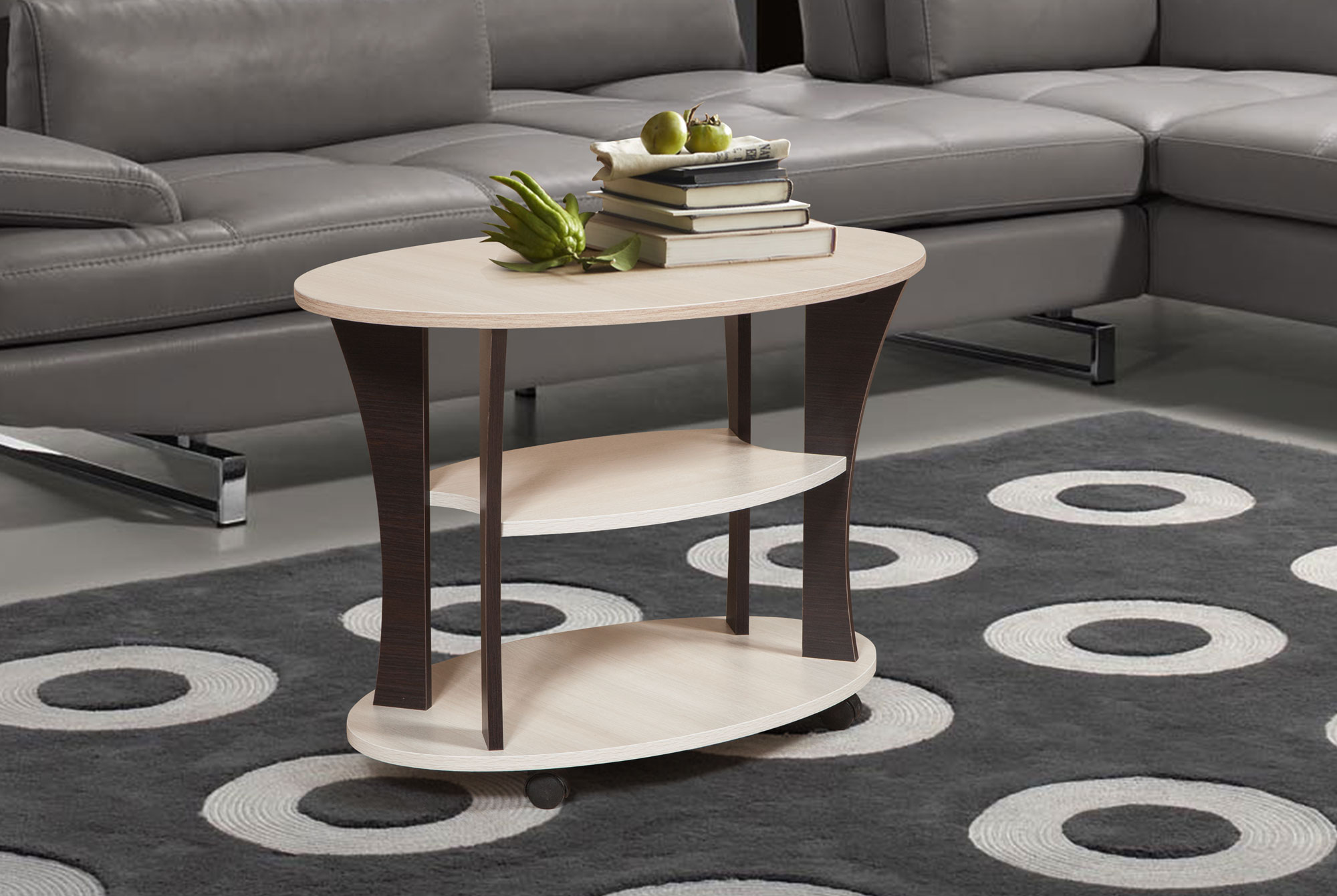 Оригинальный журнальный столик «Барселона» станет украшением Вашей комнаты и приятным компаньоном в отдыхе. При желании, Вы можете накрыть на нём романтический ужин или сыграть в монополию. Под столешницей на фигурных стойках закреплена полочка для прессы, книг, рукоделия, предметов декора. Колесные опоры в основании стола придают ему мобильность и столик с лёгкостью может быть перемещен в удобное Вам место.