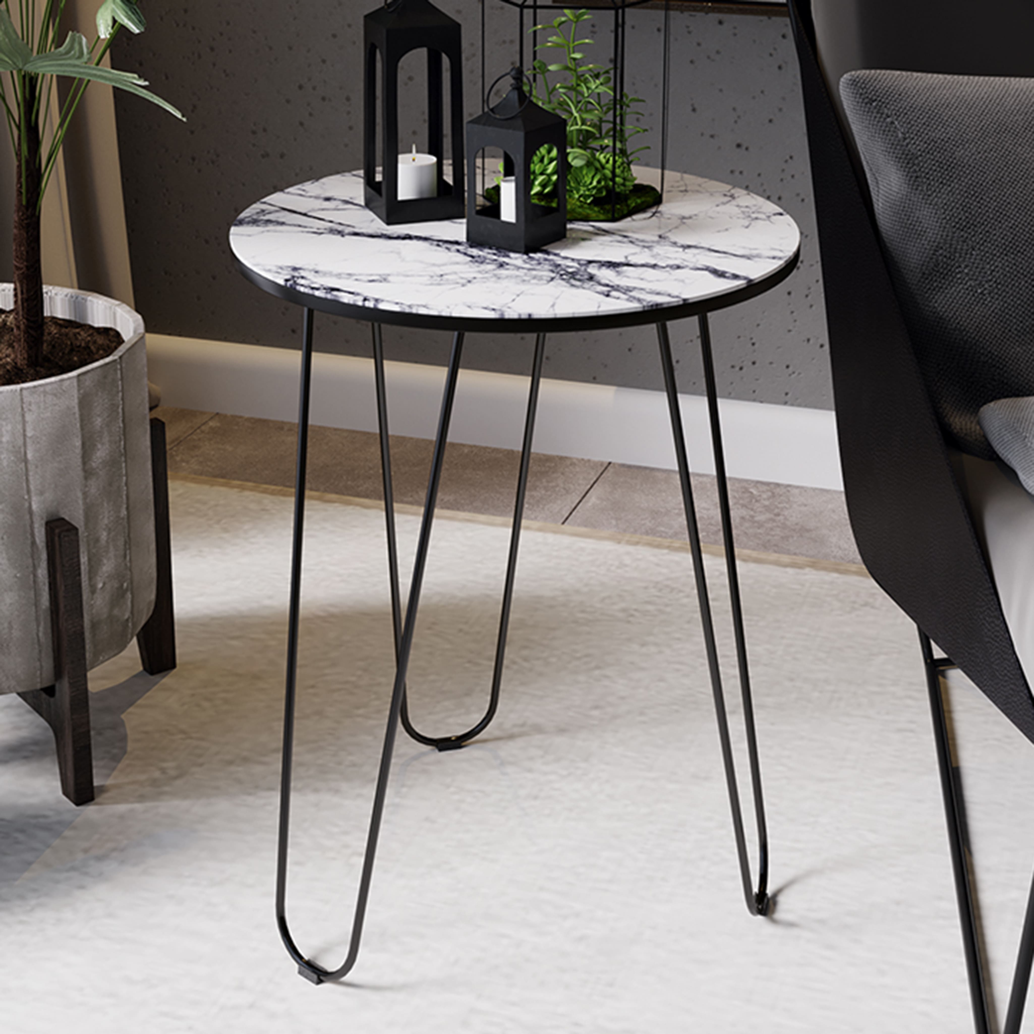 Стол журнальный «ДП 1-03-09» д.480*605, стекло мрамор белый/черный