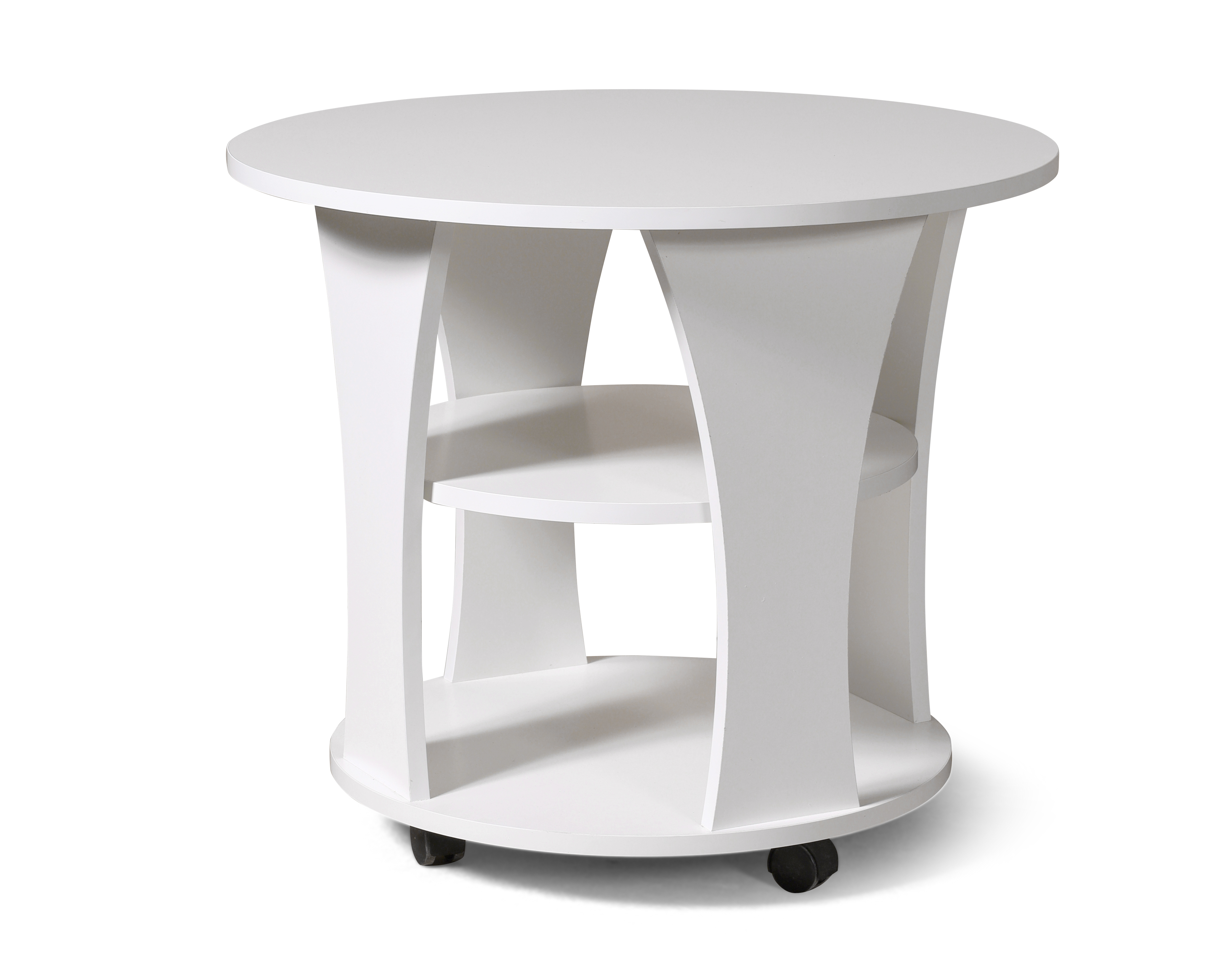 Яркий, красивый круглый журнальный стол создан для изысканного интерьера. Элегантный и изящный журнальный столик при кажущейся легкости имеет прочную конструкцию и надежный каркас. Стол очень интересно смотрится благодаря фигурным ножкам. Наличие полочек делает этот журнальный столик более функциональным.