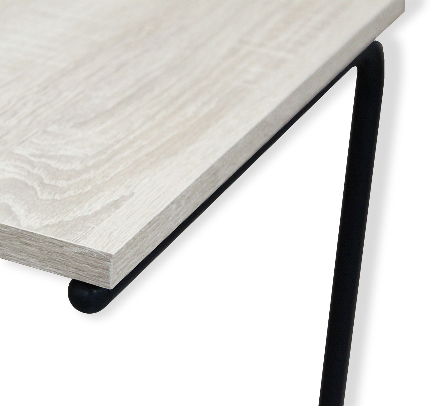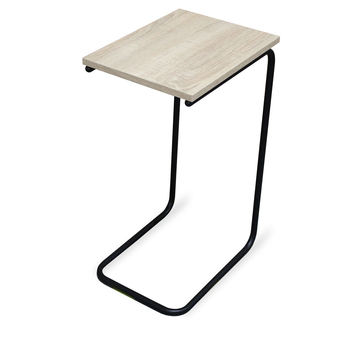 Надежный металлический каркас окрашен порошковой краской, устойчивой к механическому воздействию. Каркас выполнен из трубы. Столешница выполнена из ЛДСП с природным рисунком под натуральное дерево. Размер столешницы 400 на 300 мм. Максимальная статическая нагрузка на столик 7 кг.