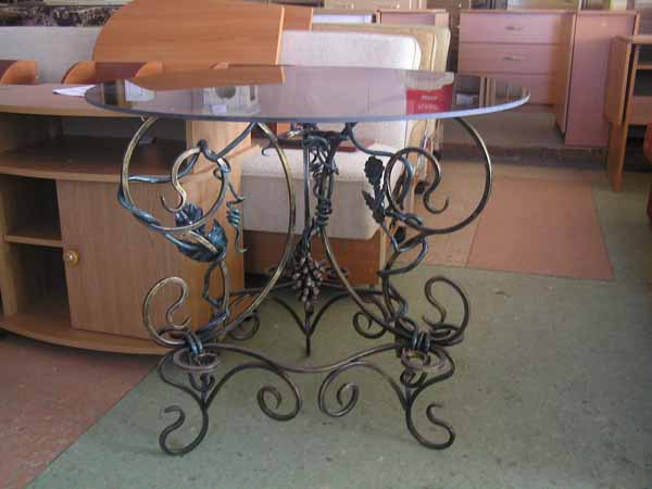 Ковка для столика применяется на ножках с различным декором в виде лепестков, завитков, листочков и других кованых элементов, которые выполняются вручную.