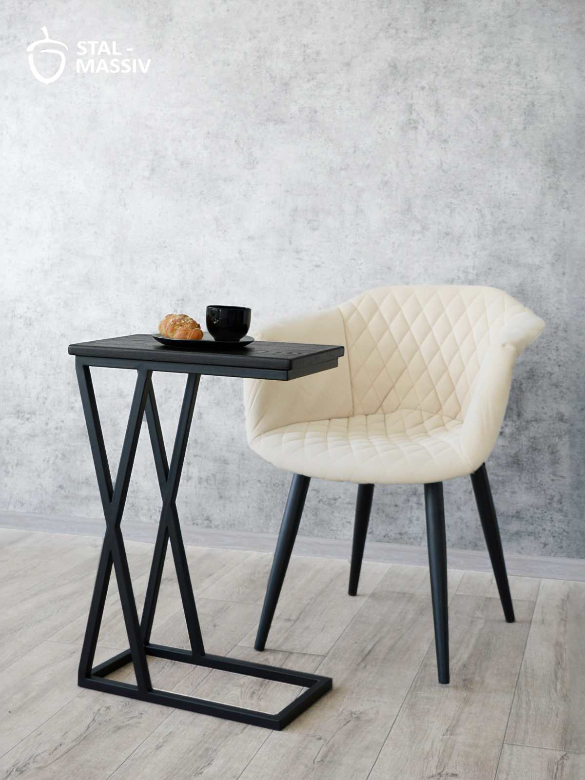 Столик приставной журнальный «GOOSE» (черный, натуральный)