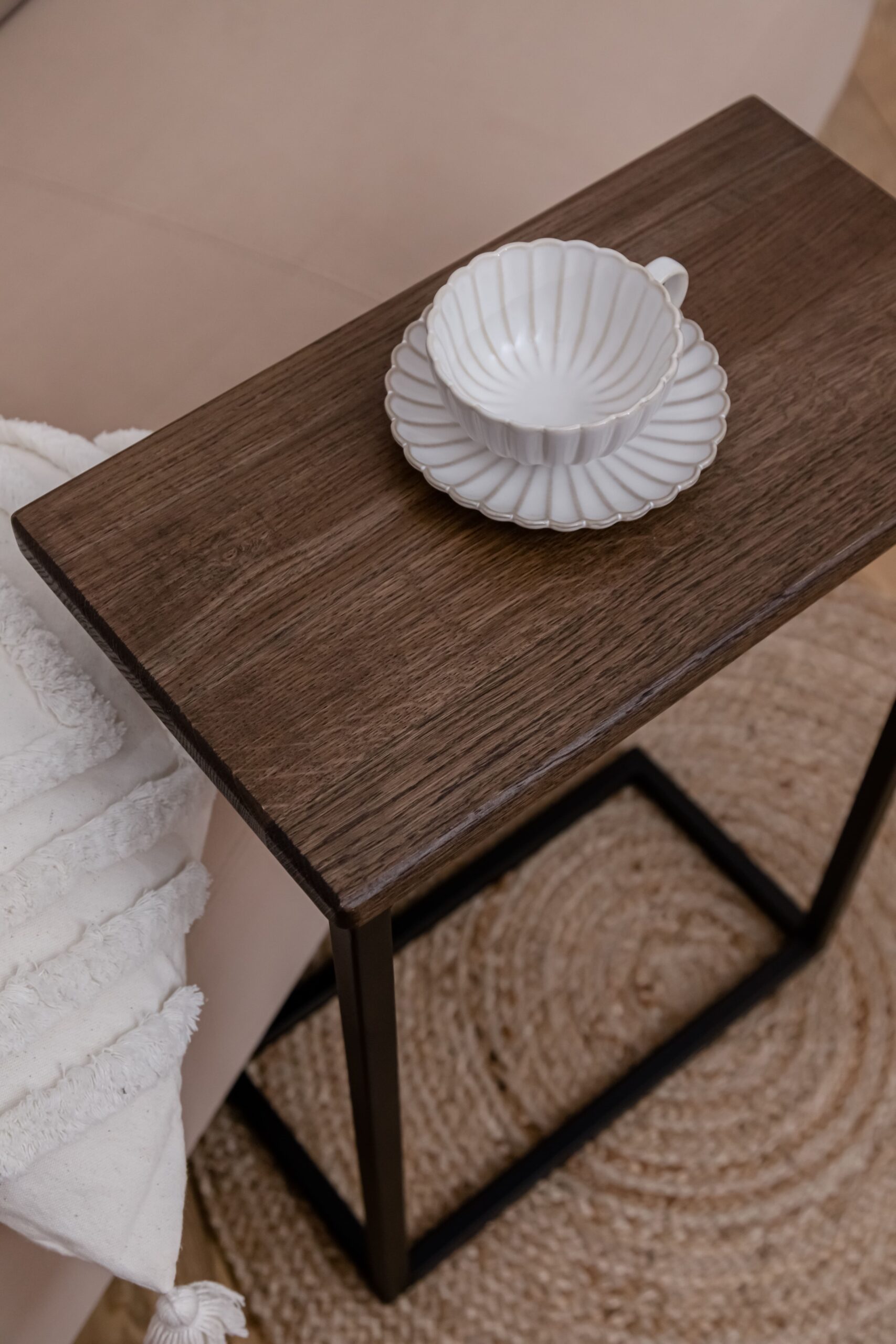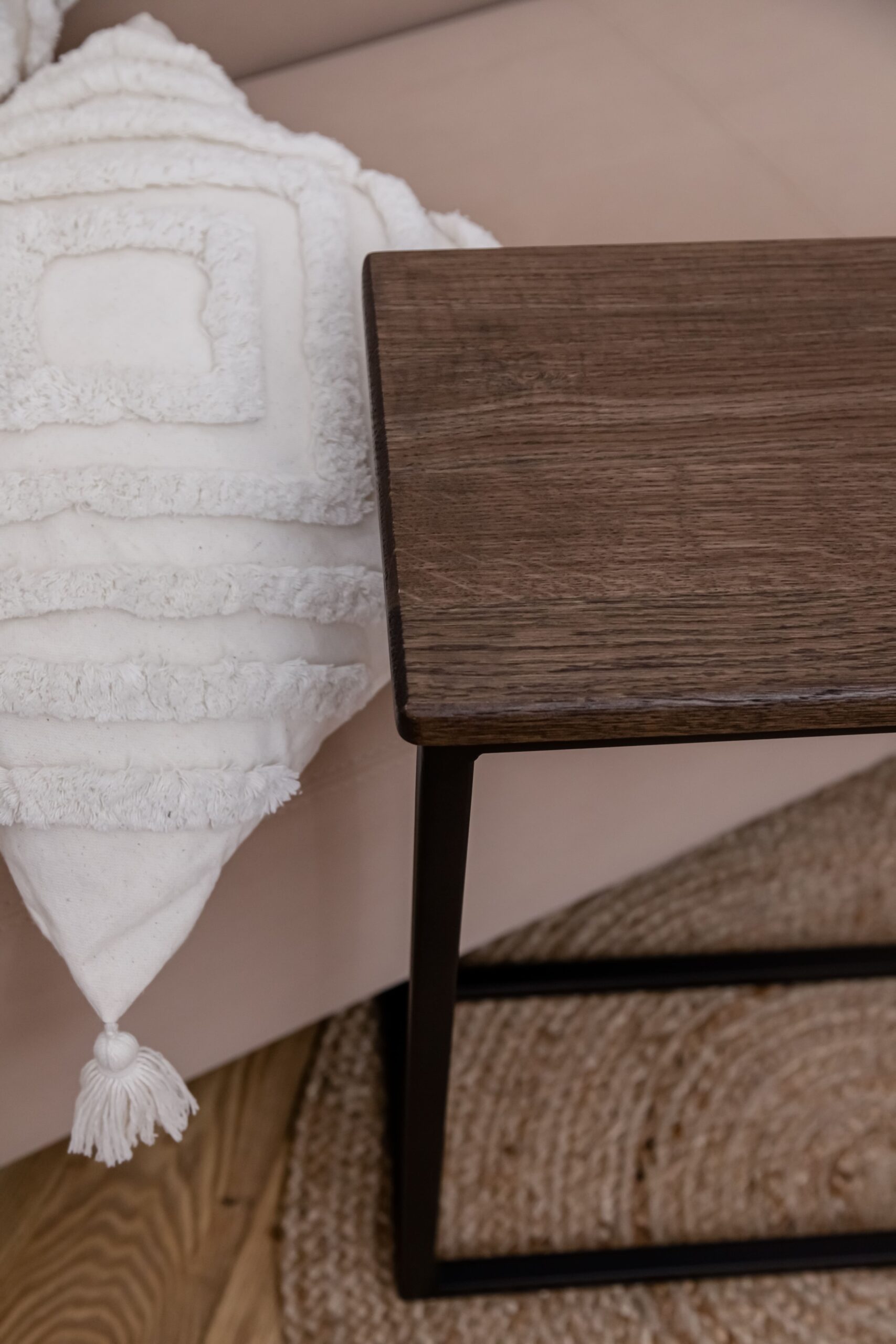 Компания STAL-MASSIV представляет вам приставной журнальный столик из массива дуба, стильный и функциональный элемент меблировки в стиле лофт. Столешница из натурального массива дуба – покорит Вас текстурой, запахом дерева и эстетикой. Деревянный столик в интерьере может стать не только функциональным элементом, но и декоративным. Кофейный столик прекрасно подходит для использования в гостиной, спальне, кабинете или любом другом помещении, где требуется дополнительная поверхность.