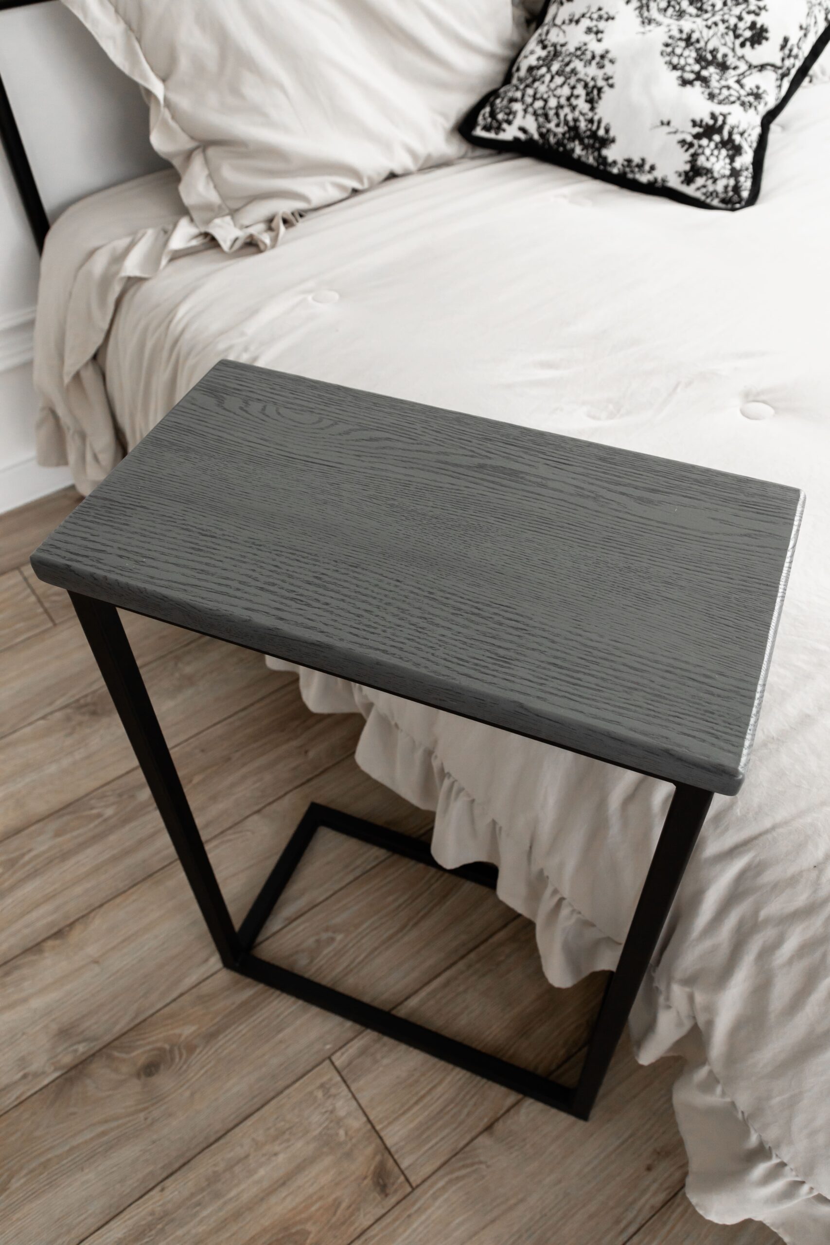 Приставной журнальный столик в стиле лофт. Изготовлен из массива дуба и высококачественного метала.