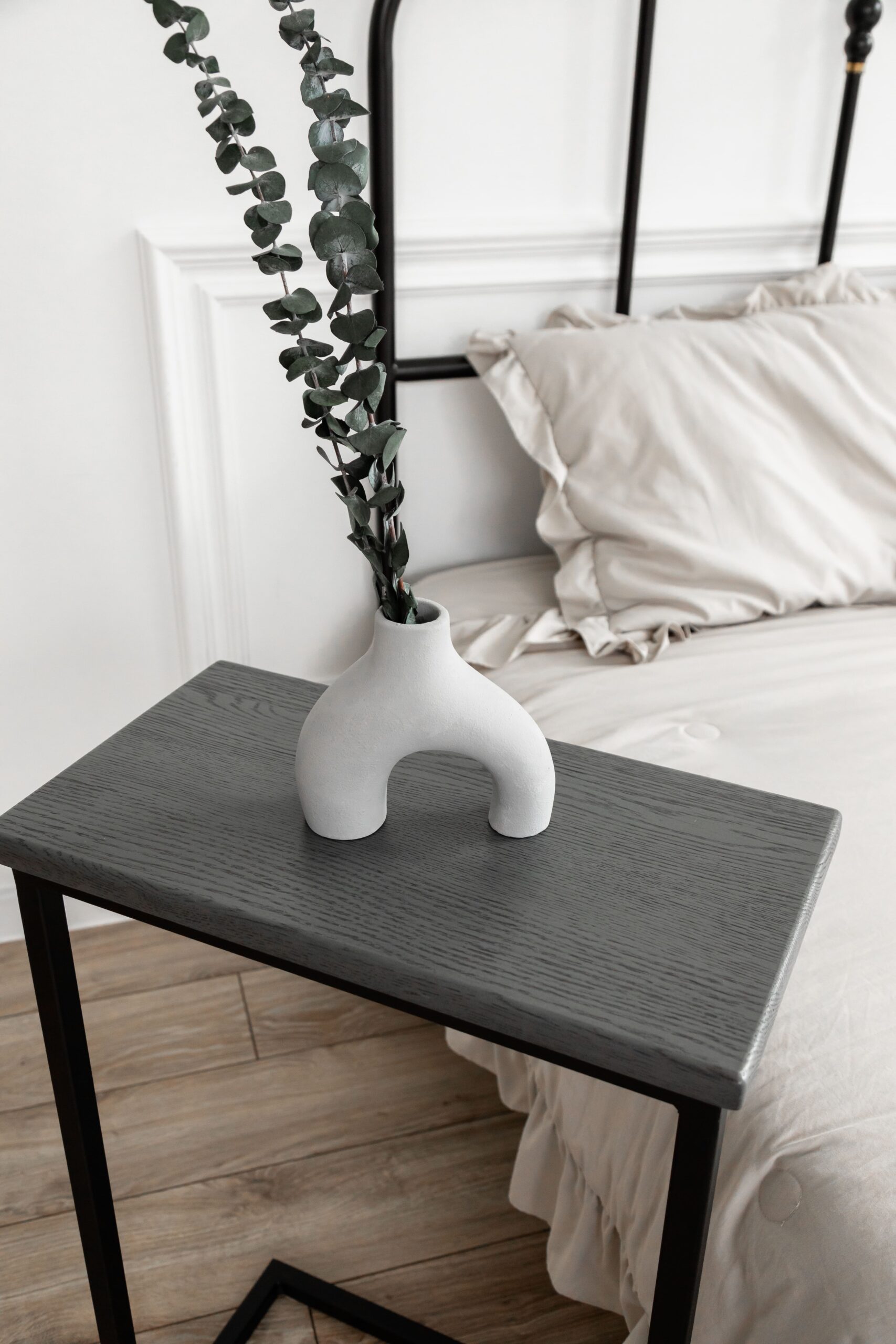 Столик журнальный, круглый «SMT-60. H52,5» (беленый, черный)