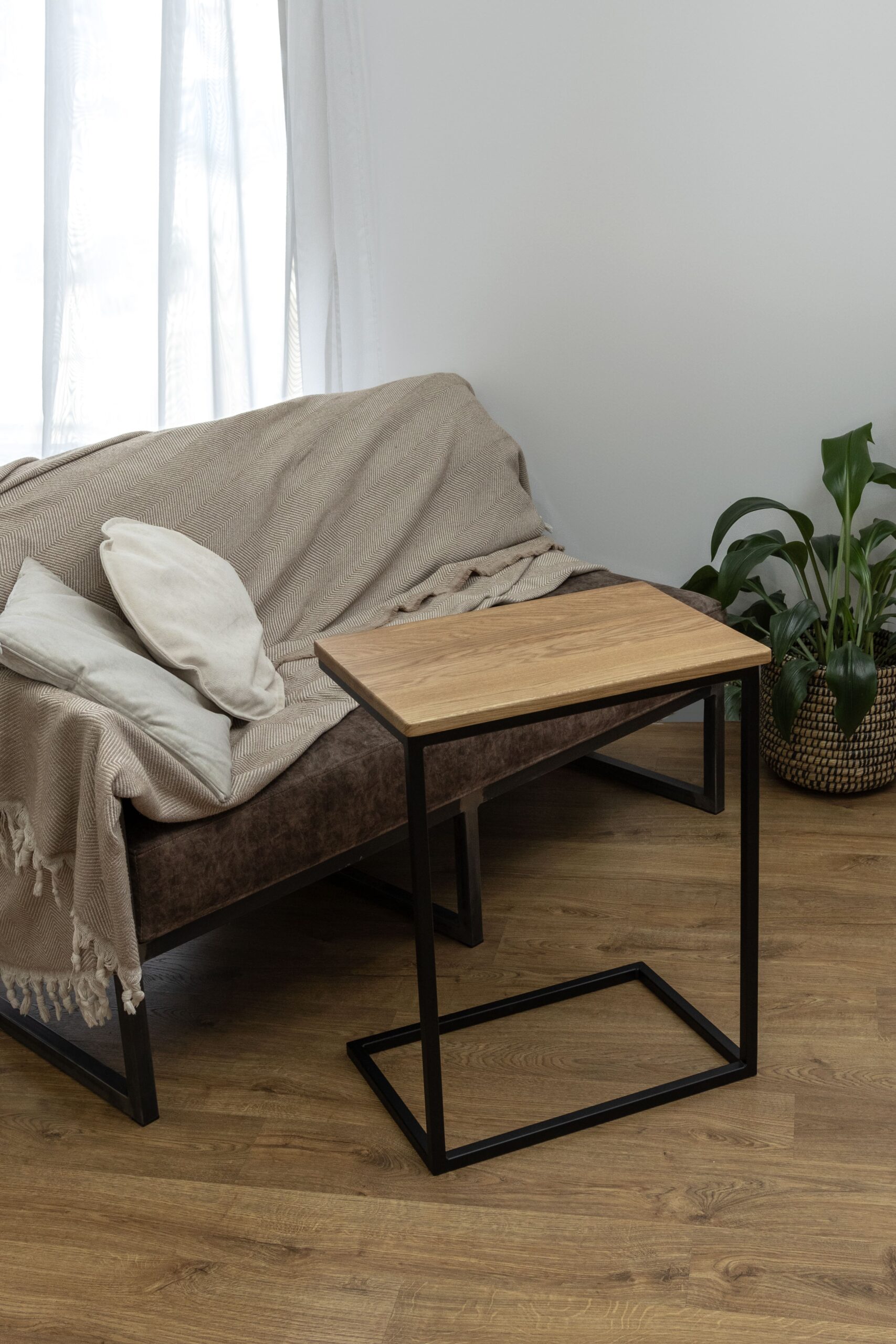 Компания STAL-MASSIV представляет вам приставной журнальный столик из массива дуба, стильный и функциональный элемент меблировки в стиле лофт. Столешница из натурального массива дуба – покорит Вас текстурой, запахом дерева и эстетикой. Деревянный столик в интерьере может стать не только функциональным элементом, но и декоративным. Кофейный столик прекрасно подходит для использования в гостиной, спальне, кабинете или любом другом помещении, где требуется дополнительная поверхность.