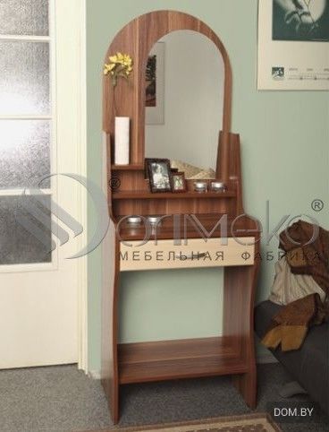 Столик туалетный «Надежда-М07» прекрасный выбор хранения всех женских атрибутов и косметики. Компактные размеры позволяют установить ее в любом помещении с небольшими габаритами. Столик выполнен в классическом стиле, дополнен фигурным зеркалом, небольшими открытыми полочками и выдвижным ящиком.