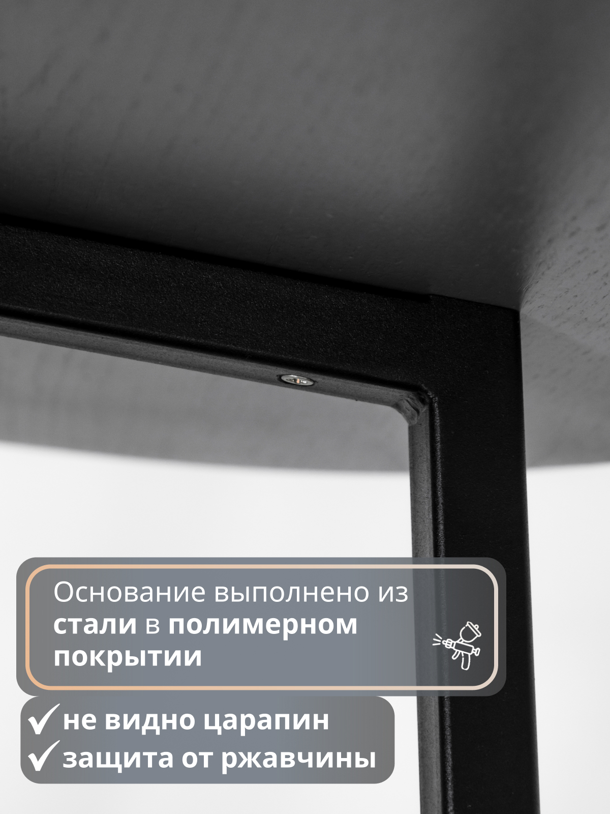 Полимерное покрытие подстолья — устойчиво к воде, царапинам и появлению ржавчины. На ножках стола установлены пластиковые заглушки, которые защищают пол от царапин и черных следов. Массив дуба, используемый для изготовления столешницы — приятный на ощупь материал, покрытый двумя слоями итальянского масла Borma и специальным воском, которые позволят столу сохранить свой первоначальный вид на протяжении длительного времени.