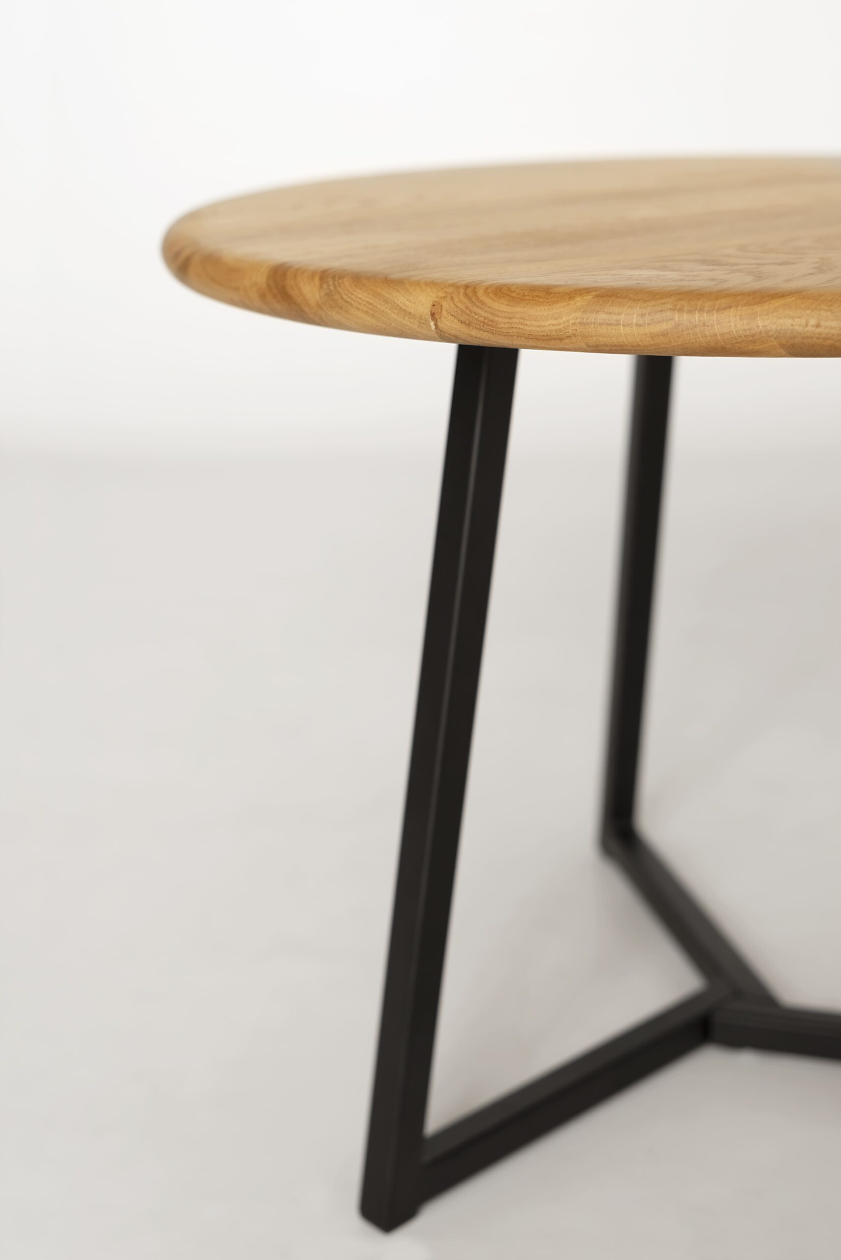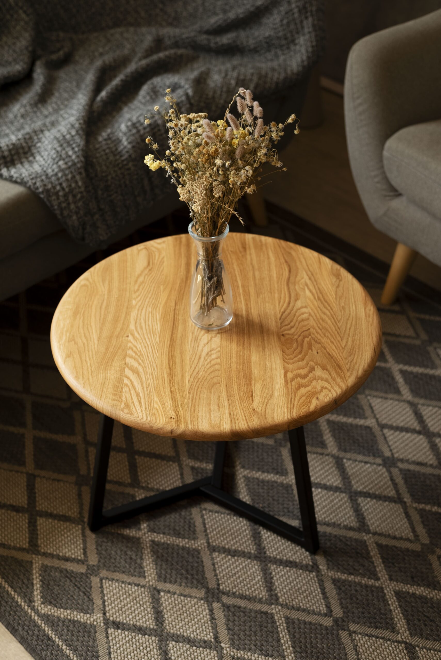 код 140969Круглый журнальный столик в стиле лофт. Материал: цельноламельный массив дуба, металл.