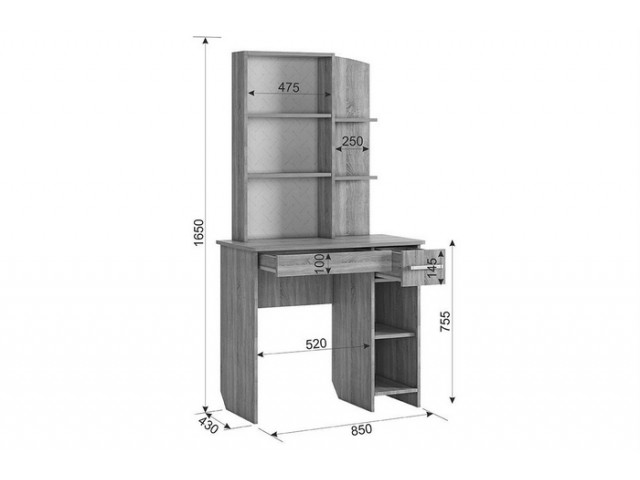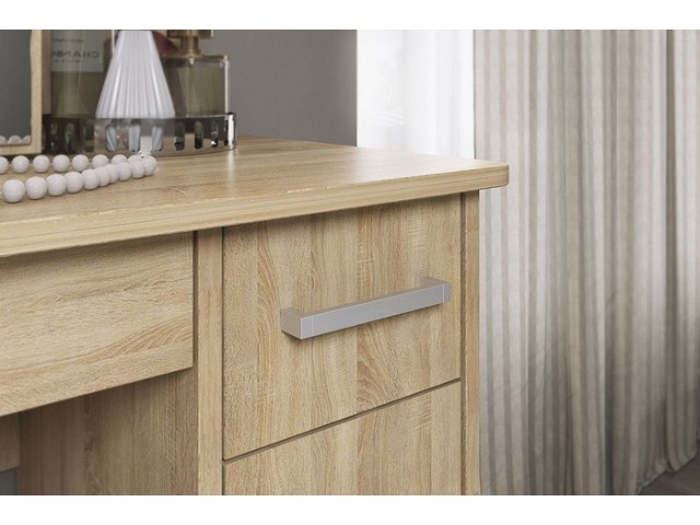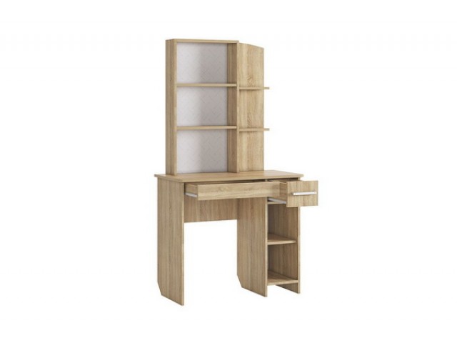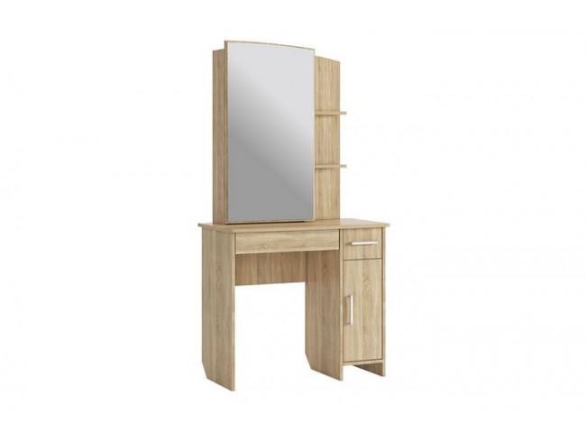 Трюмо Виктория 1 в светлом декоре дуб сонома содержит открытые и закрытые полки для парфюмерии и косметики, ящики для украшений, фена и прочих мелочей. Удобное, функциональное и красивое трюмо - это настоящая находка!