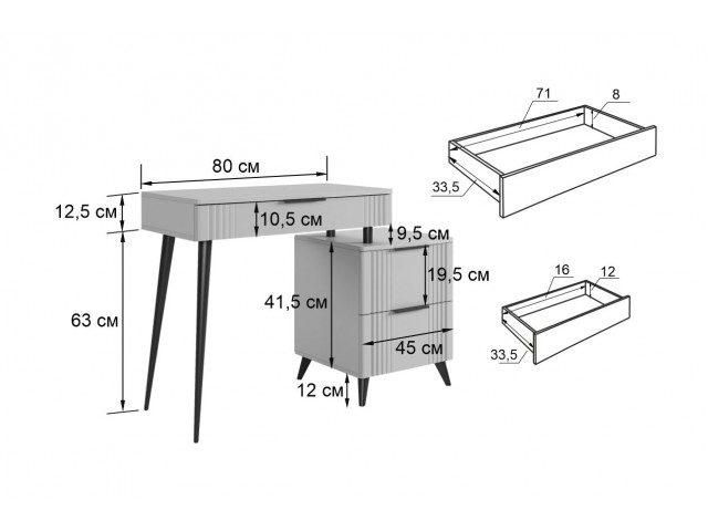 Катрин Туалетный столик (без зеркала) элегантный и функциональный. Этот предмет мебели станет стильным дополнением к вашей спальне и предоставит удобное место для хранения вещей, а также может использоваться как письменный стол.
