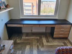Практичный стол с выдвижными ящиками и надставкой на столешнице.