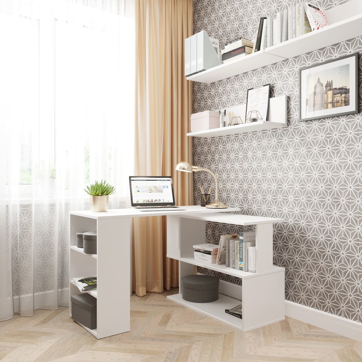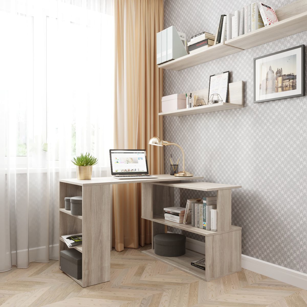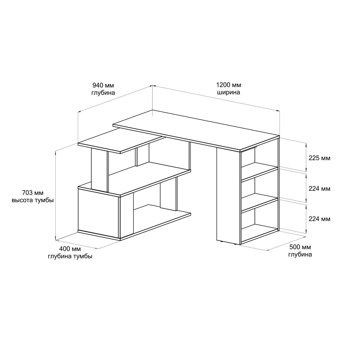 Письменный стол с поворотным модулем ДОМУС СТР02 с открытыми полками поможет создать стильное и удобное рабочее место. Стол-трансформер поворачивается на 360 градусов. Компактный рабочий стол спиннер в сложенном виде не занимает много места и по необходимости легко раскладывается в угловой или линейный. Вместительная тумба позволит хранить все необходимые для учебы и работы принадлежности под рукой.
