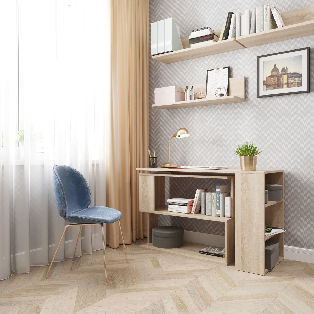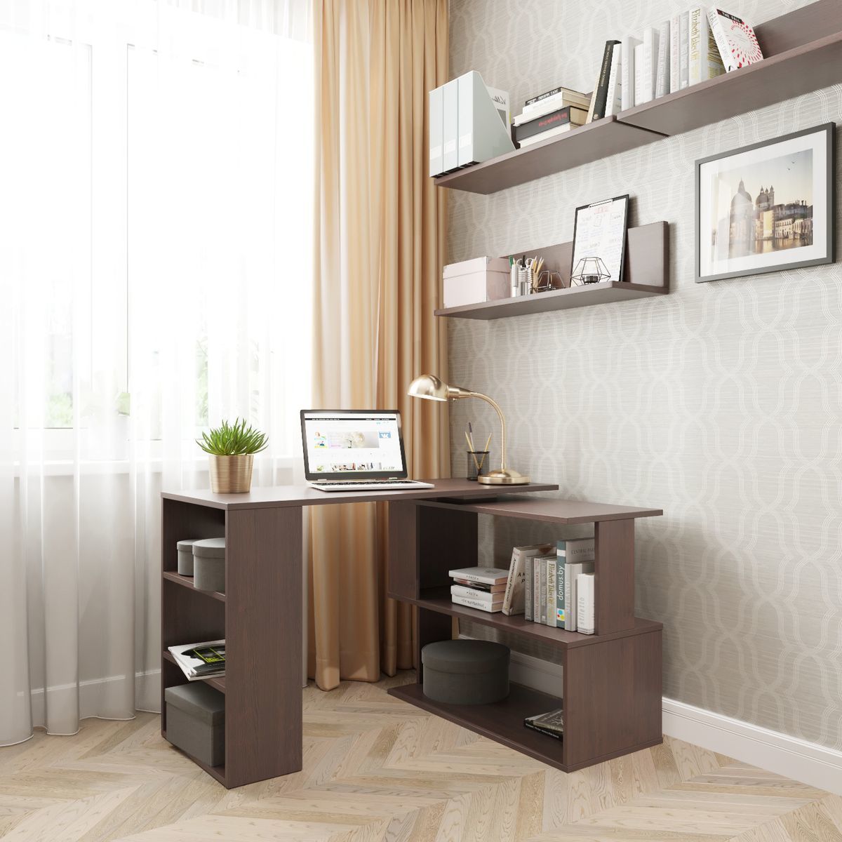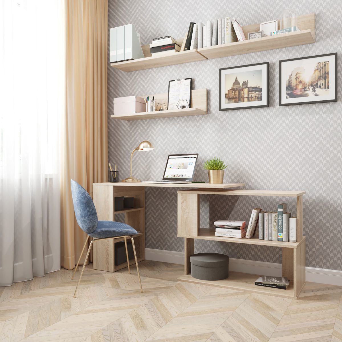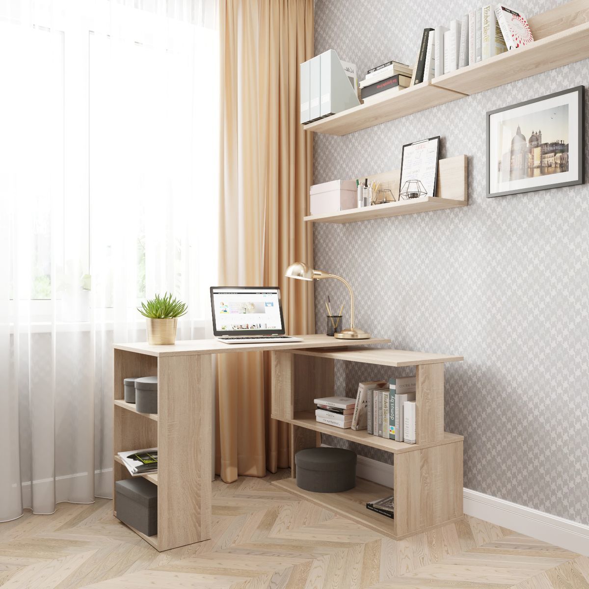 Письменный стол с поворотным модулем ДОМУС СТР02 с открытыми полками поможет создать стильное и удобное рабочее место. Стол-трансформер поворачивается на 360 градусов. Компактный рабочий стол спиннер в сложенном виде не занимает много места и по необходимости легко раскладывается в угловой или линейный. Вместительная тумба позволит хранить все необходимые для учебы и работы принадлежности под рукой.