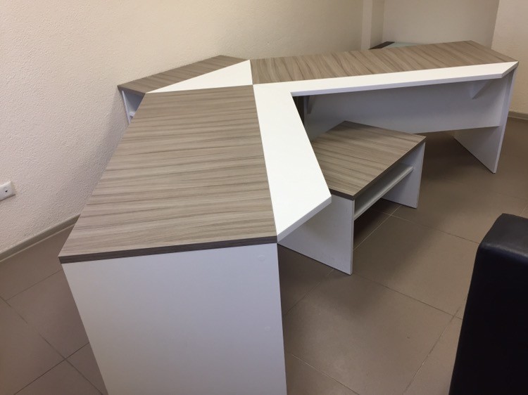 Рабочее место для школьников. Стол сложной конфигурации для 2х детей. С полками.