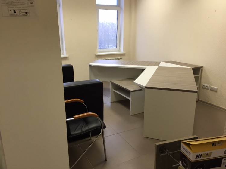 Комплект из стола, тумбы и стеллажа.