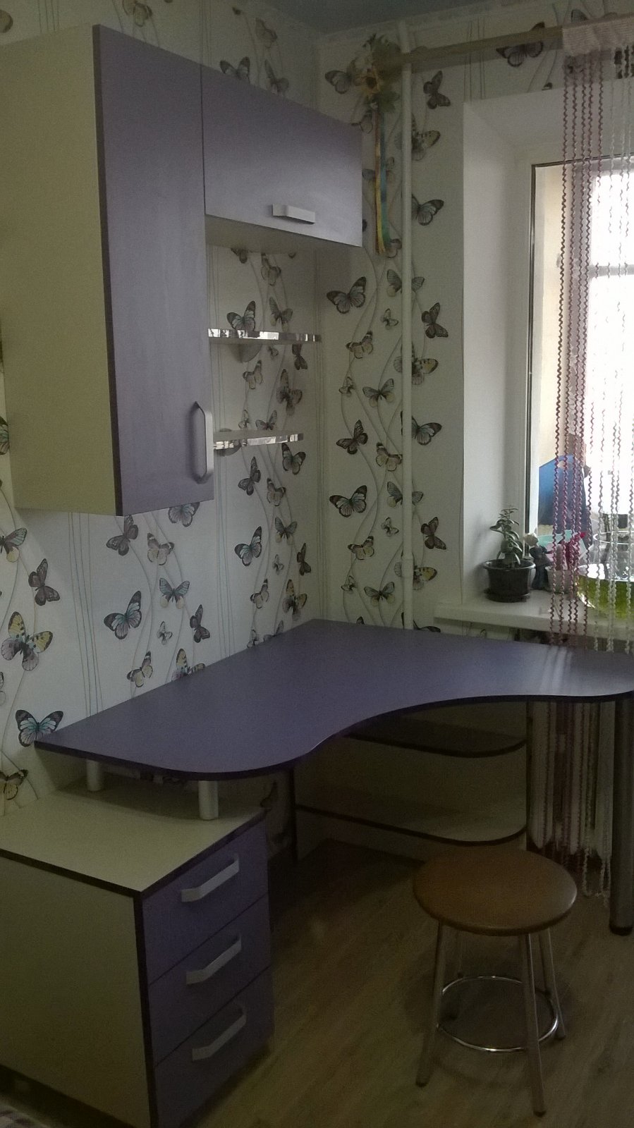Угловой стол с тумбой и шкафчиками