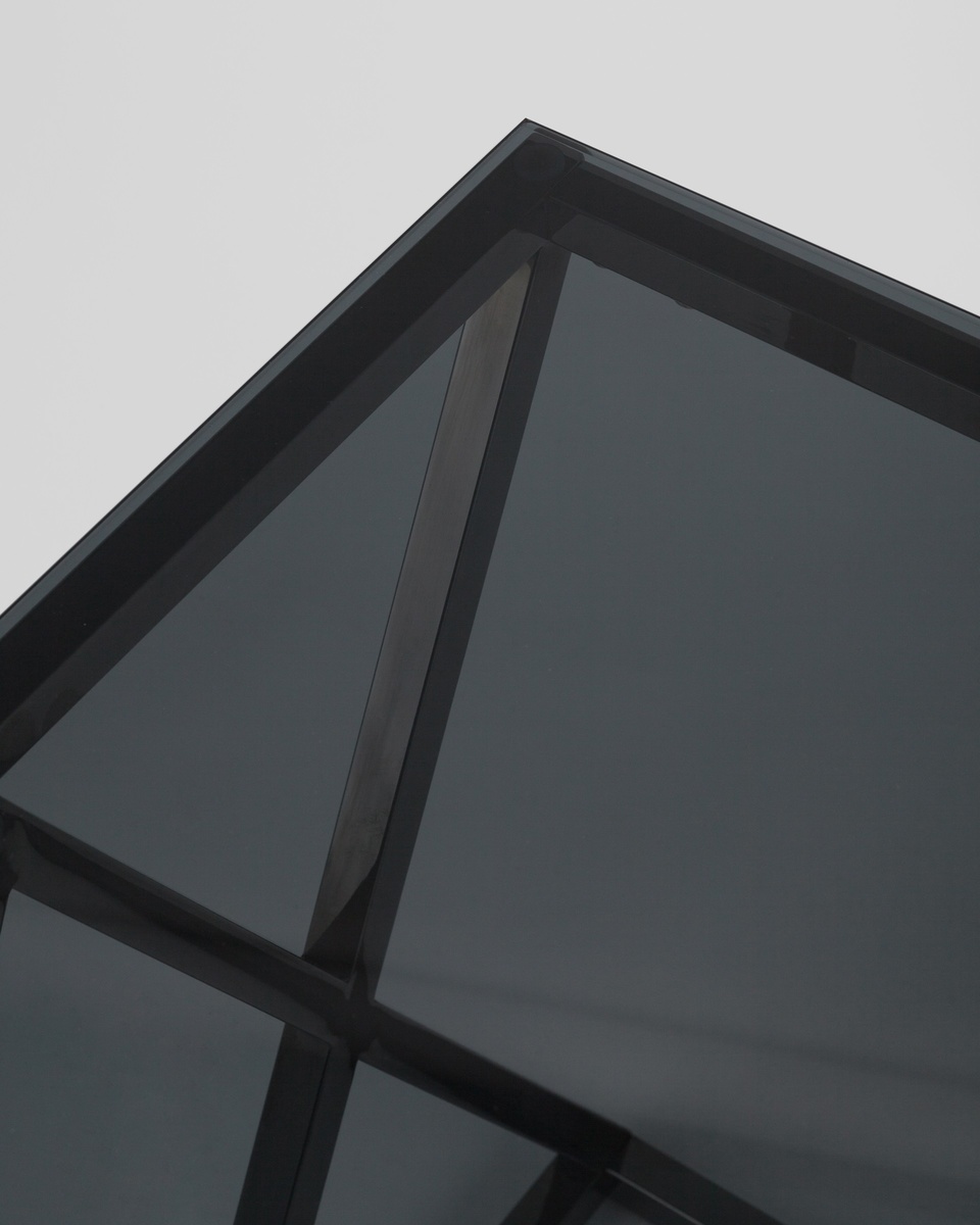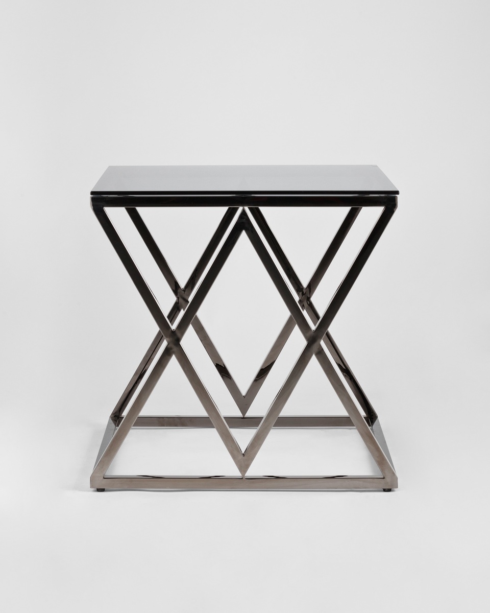 Журнальный стол 55*55 «Инсигния», стекло smoke, сталь тёмный хром