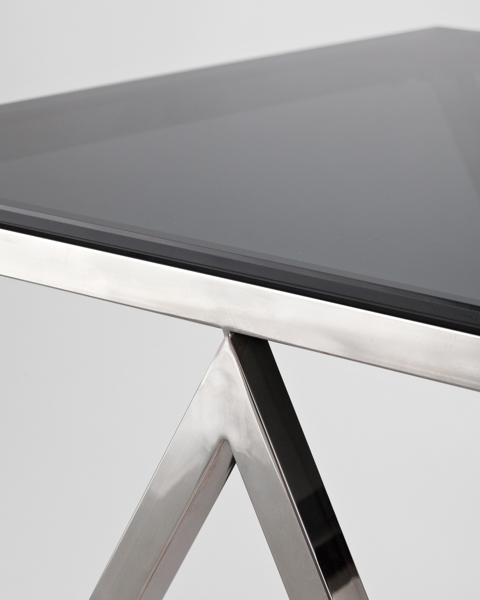 Каркас стола изготовлен из нержавеющей стали, столешница - закаленное стекло.