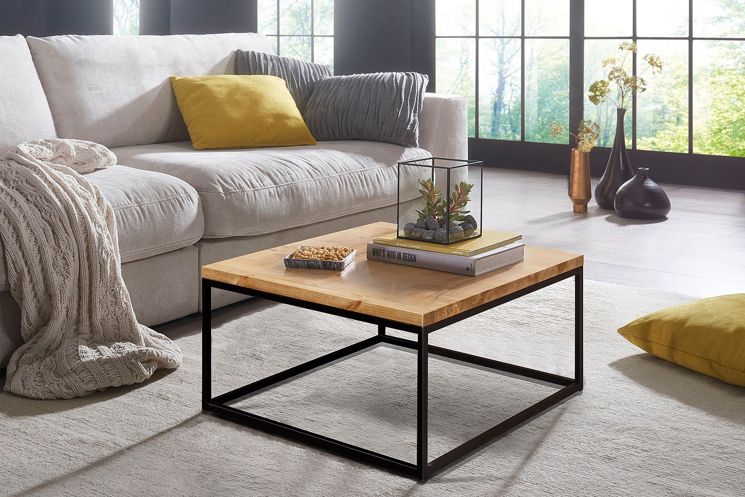 Приставной журнальный столик в стиле лофт. Изготовлен из массива дуба и высококачественного метала.