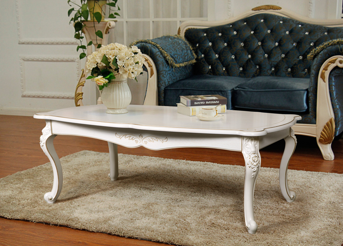 Журнальный стол «Витовт» изготовлен в сомом традиционном классическом стиле, с присущими ему летящими формами и красивой резьбой. Прямоугольная столешница с фигурным краем, выполненным при помощи фигурной фрезеровки, установлена на изящные изогнутые ножки. Цвет выбран благородной слоновой кости с золотой патиной.